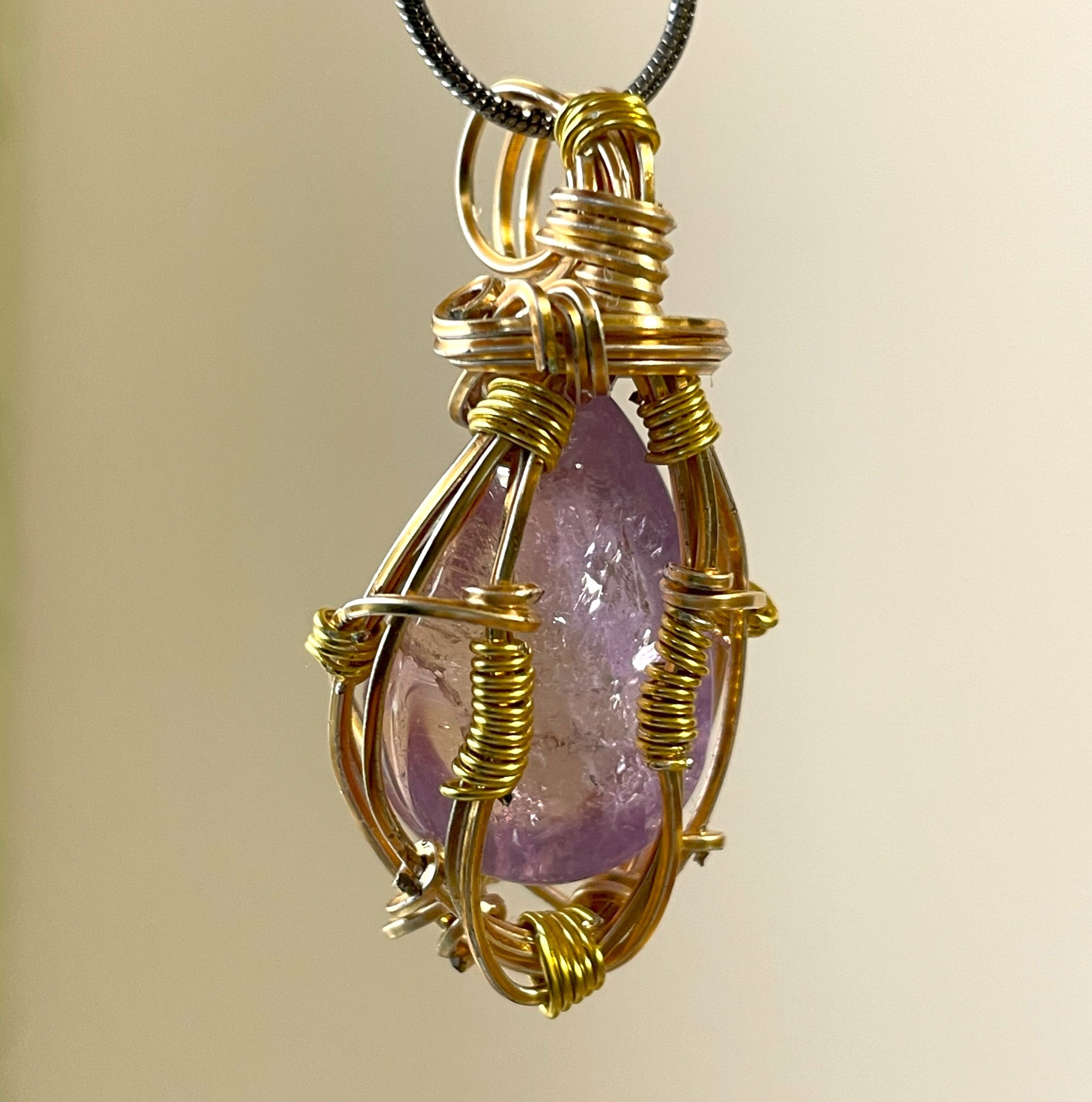 美しいアメジスト天然石が輝くように私が制作したオリジナルのワイヤーアートペンダントです。