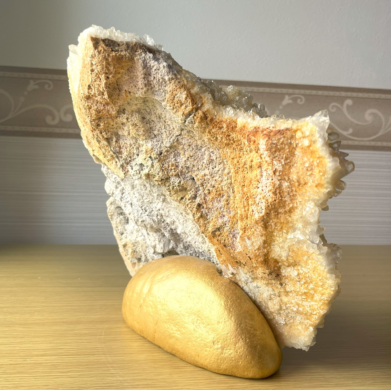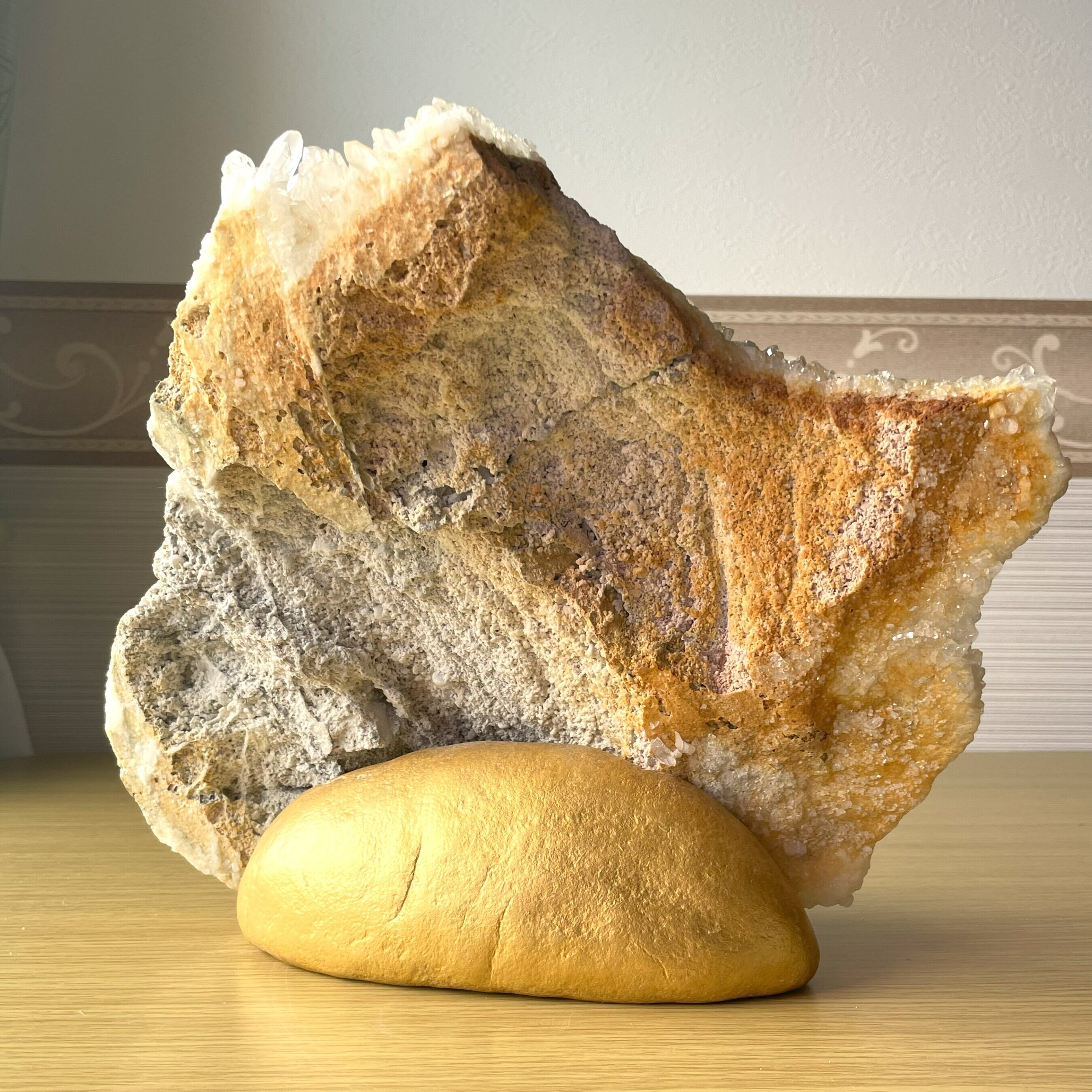 産地は不明です。裏側の母岩が柔らかめなため、細かいかけらが落ちることがあります。水晶自体はしっかりしているため、強い衝撃を与えなければ崩れはしないと思います。