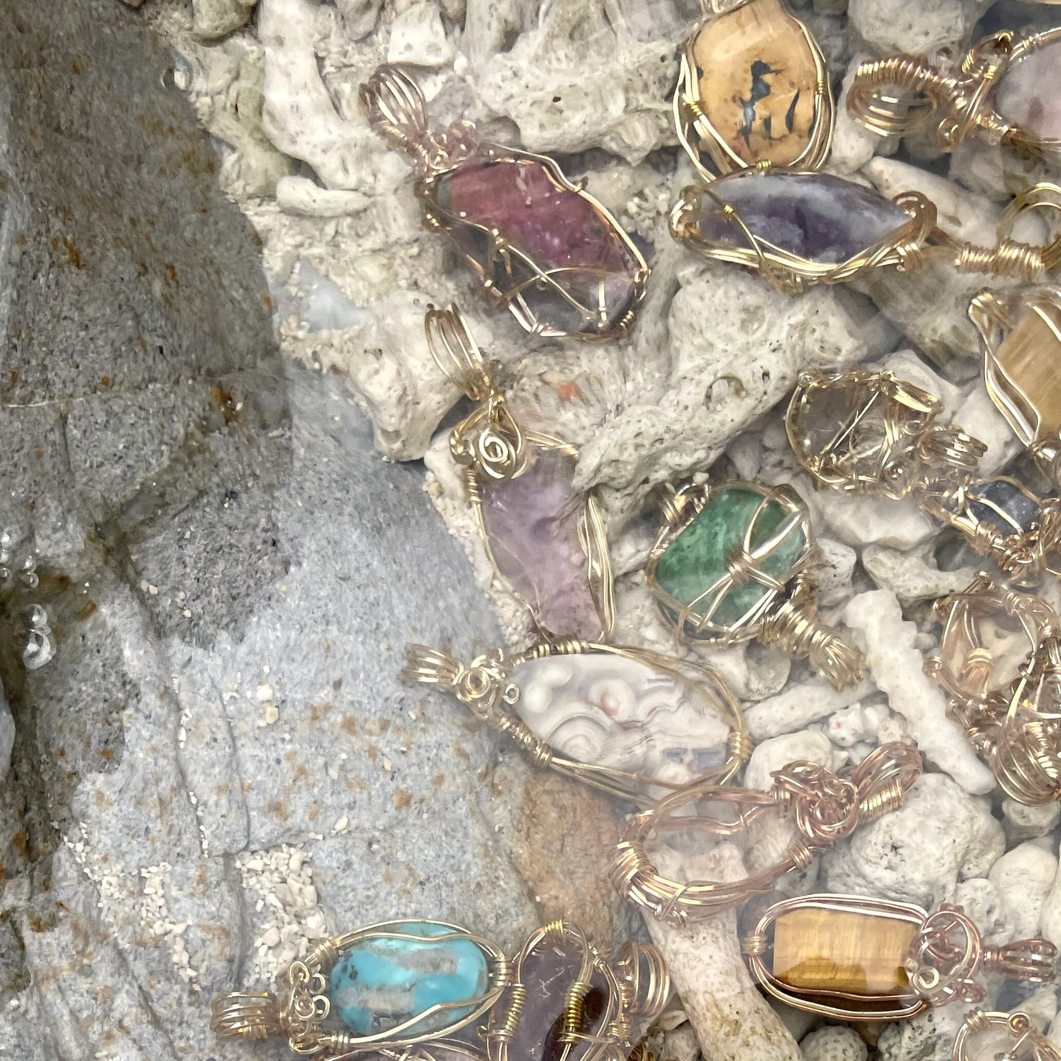 アメジスト オリジナル ワイヤーアートペンダント 沖縄エネルギーチャージ 紫水晶 天然石 虹あり ドラゴンスタークリスタル 送料無料