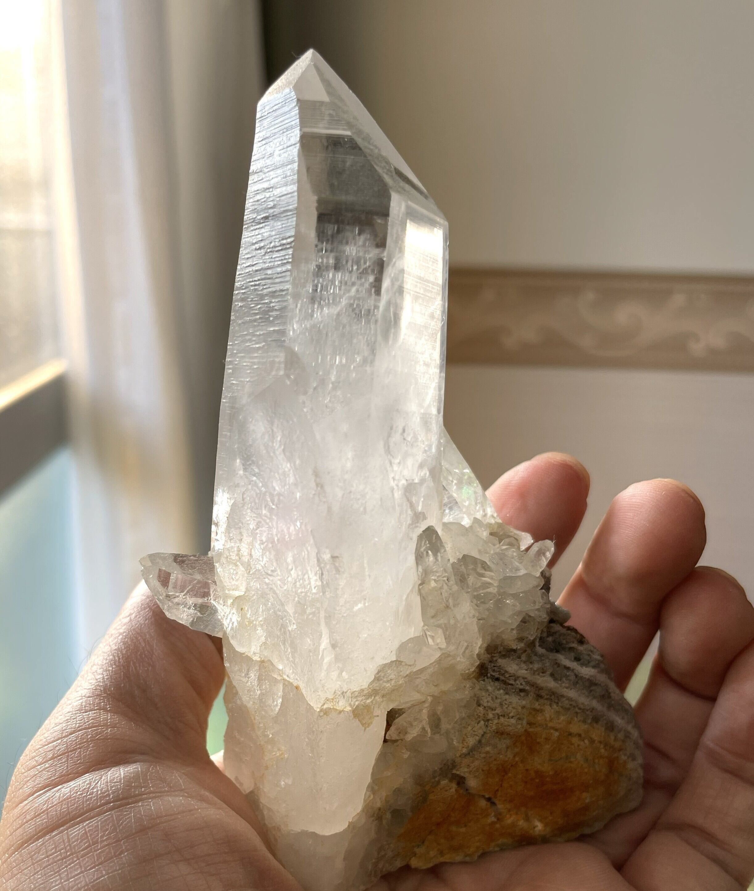 イエローゴールド調の母岩と結晶が一体化し、絵になるヒマラヤ水晶ポイントです。