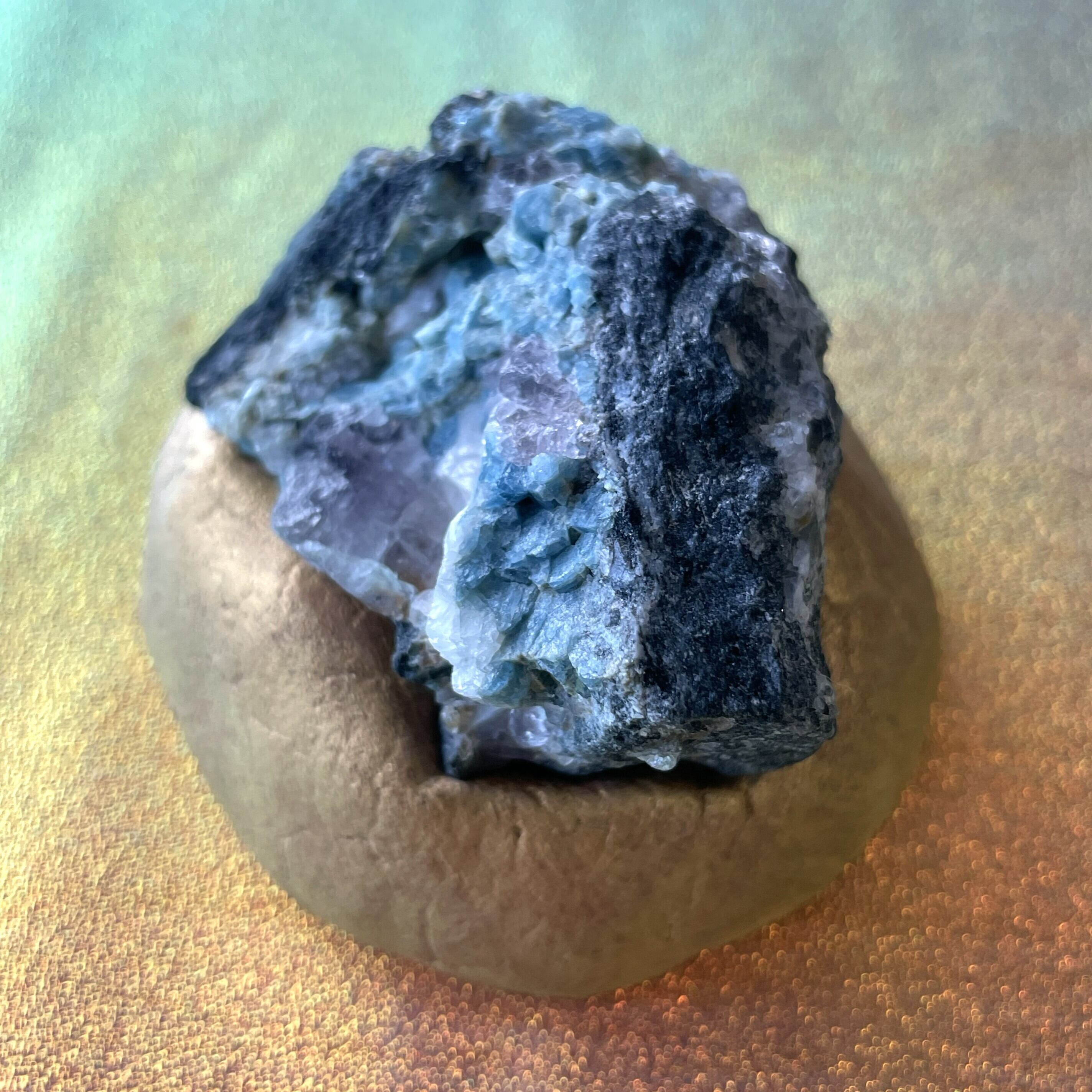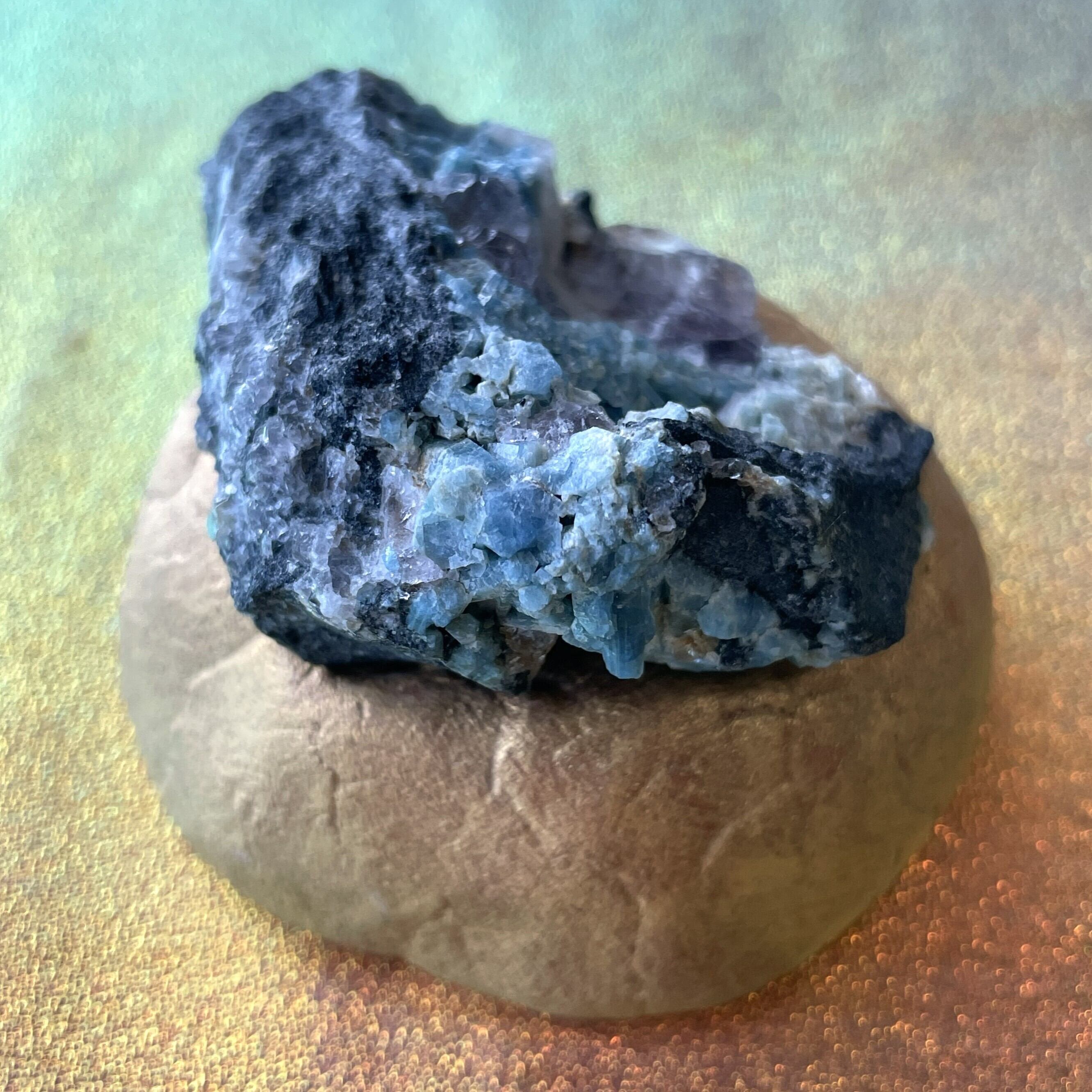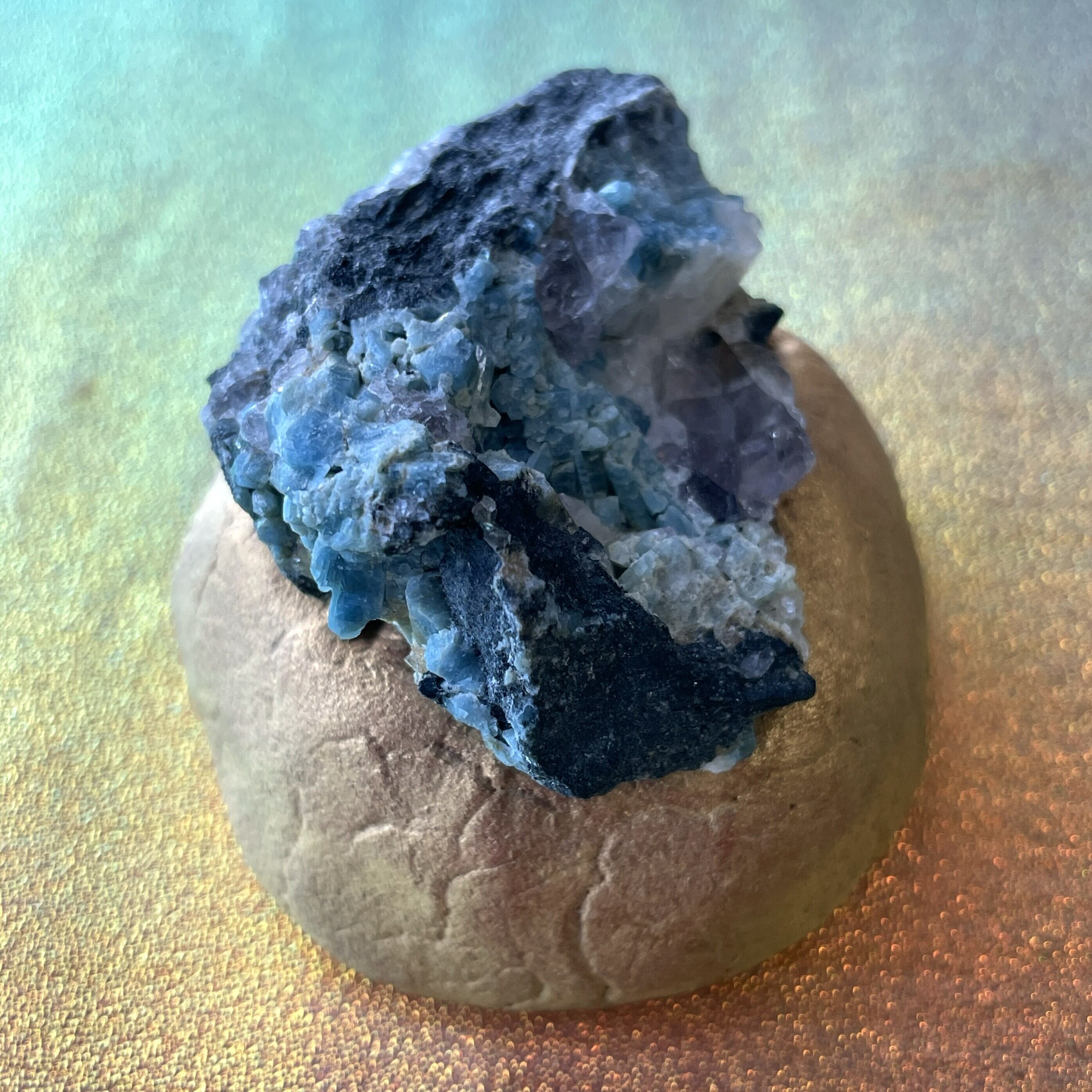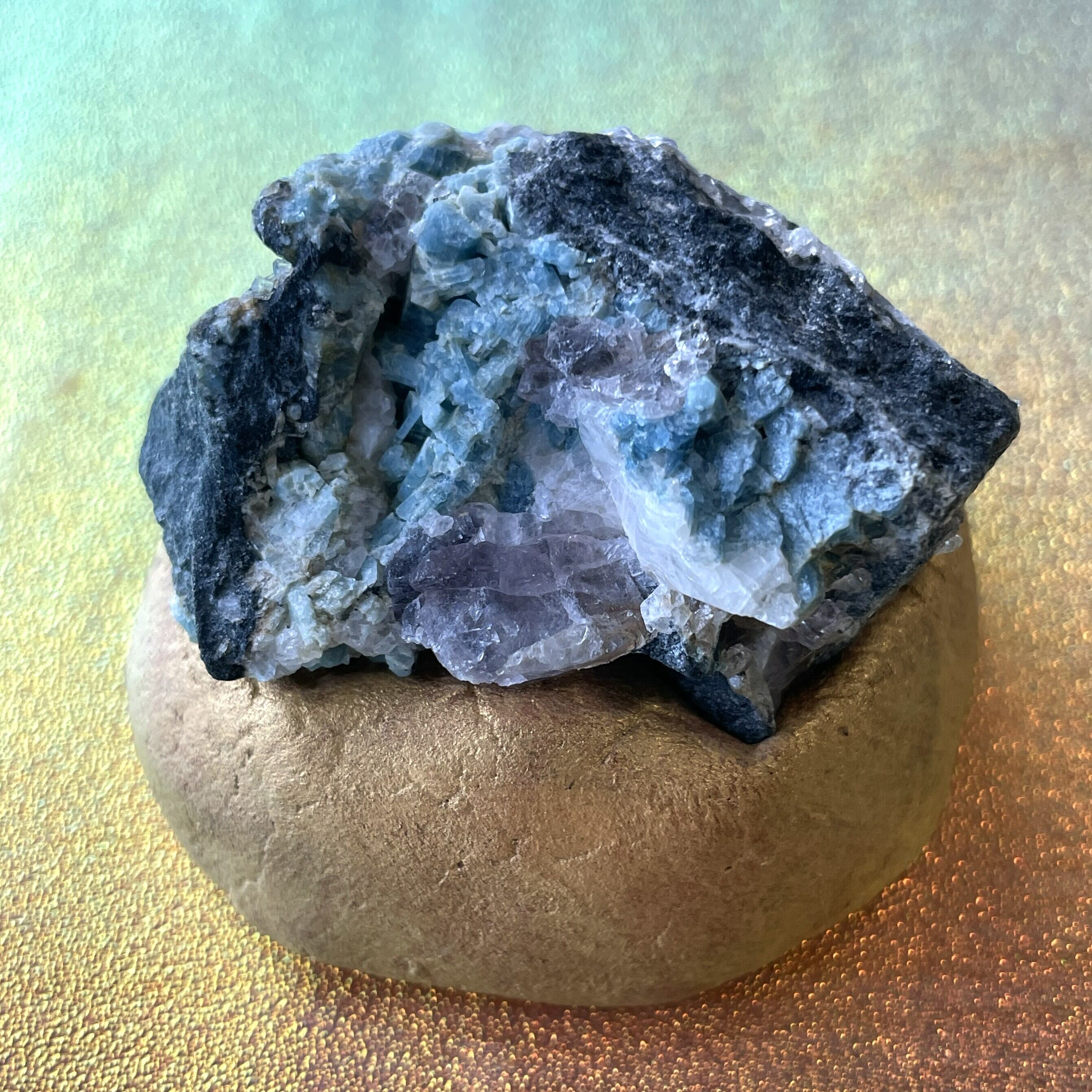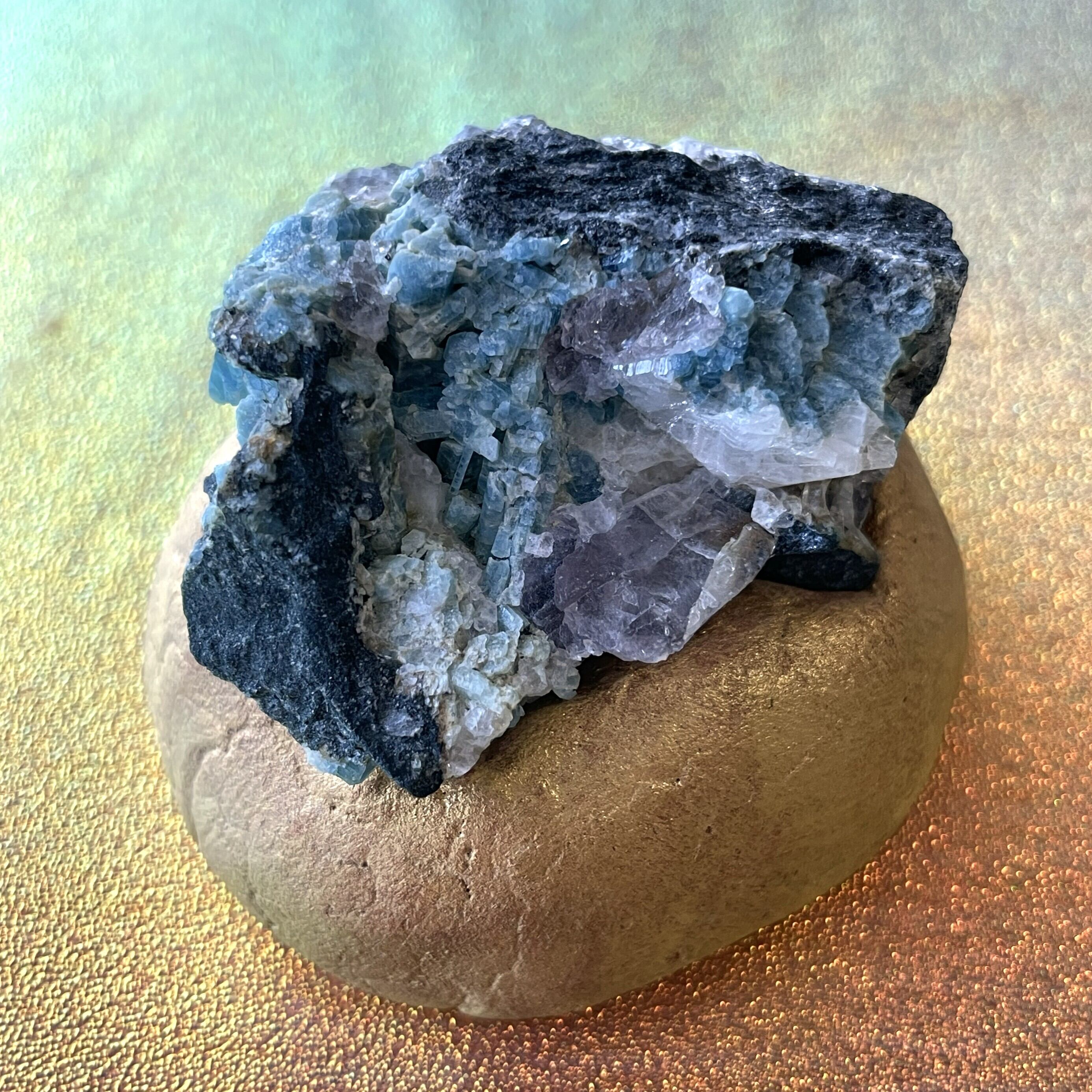 希少 フェナカイト&フローライト&アクアマリン共生クラスター 天然石 ロシア産 自然石 台座付き ドラゴンスタークリスタル 送料無料
