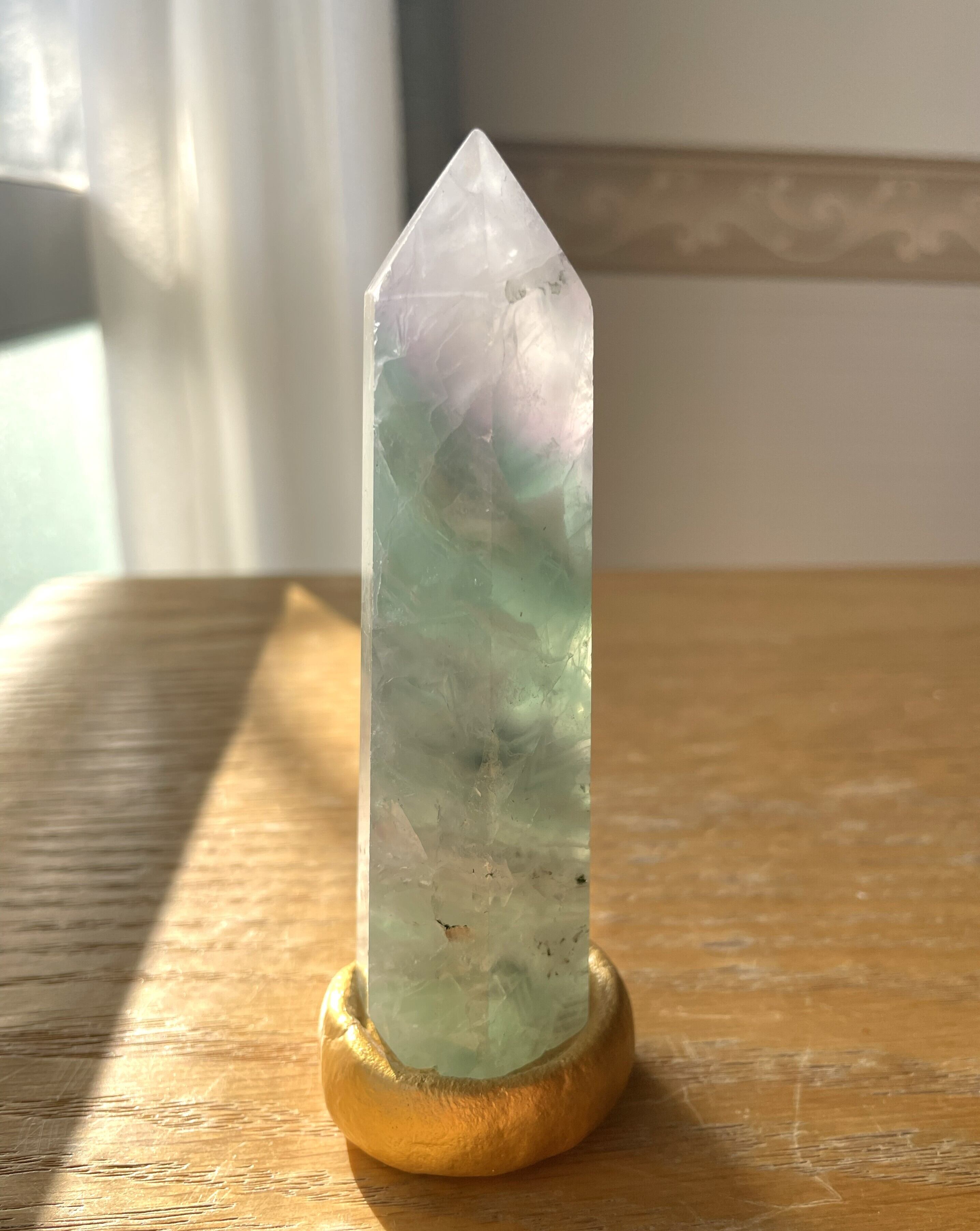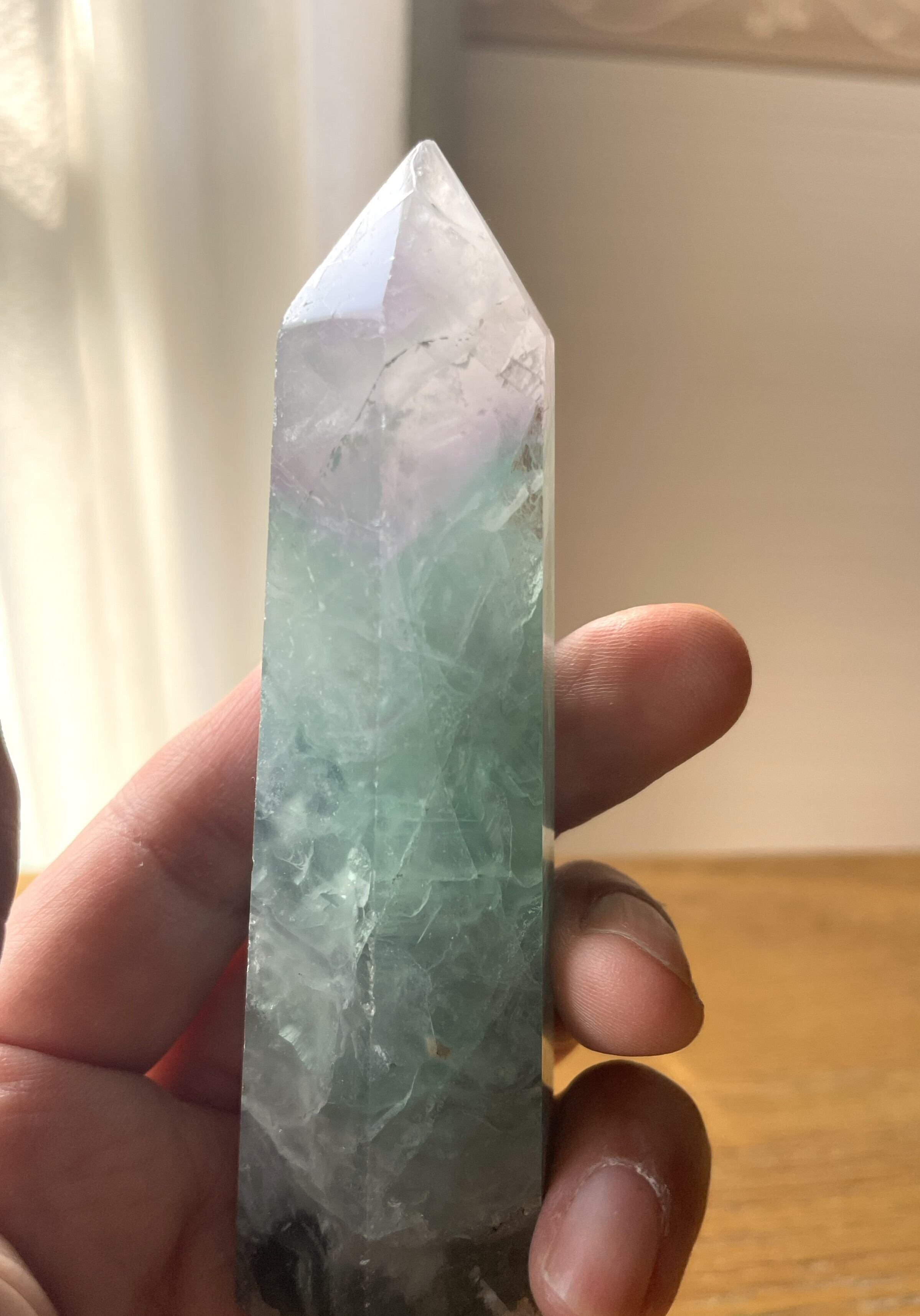 グリーン&パープル 優しい色彩で虹も楽しめるフローライトポイントです。