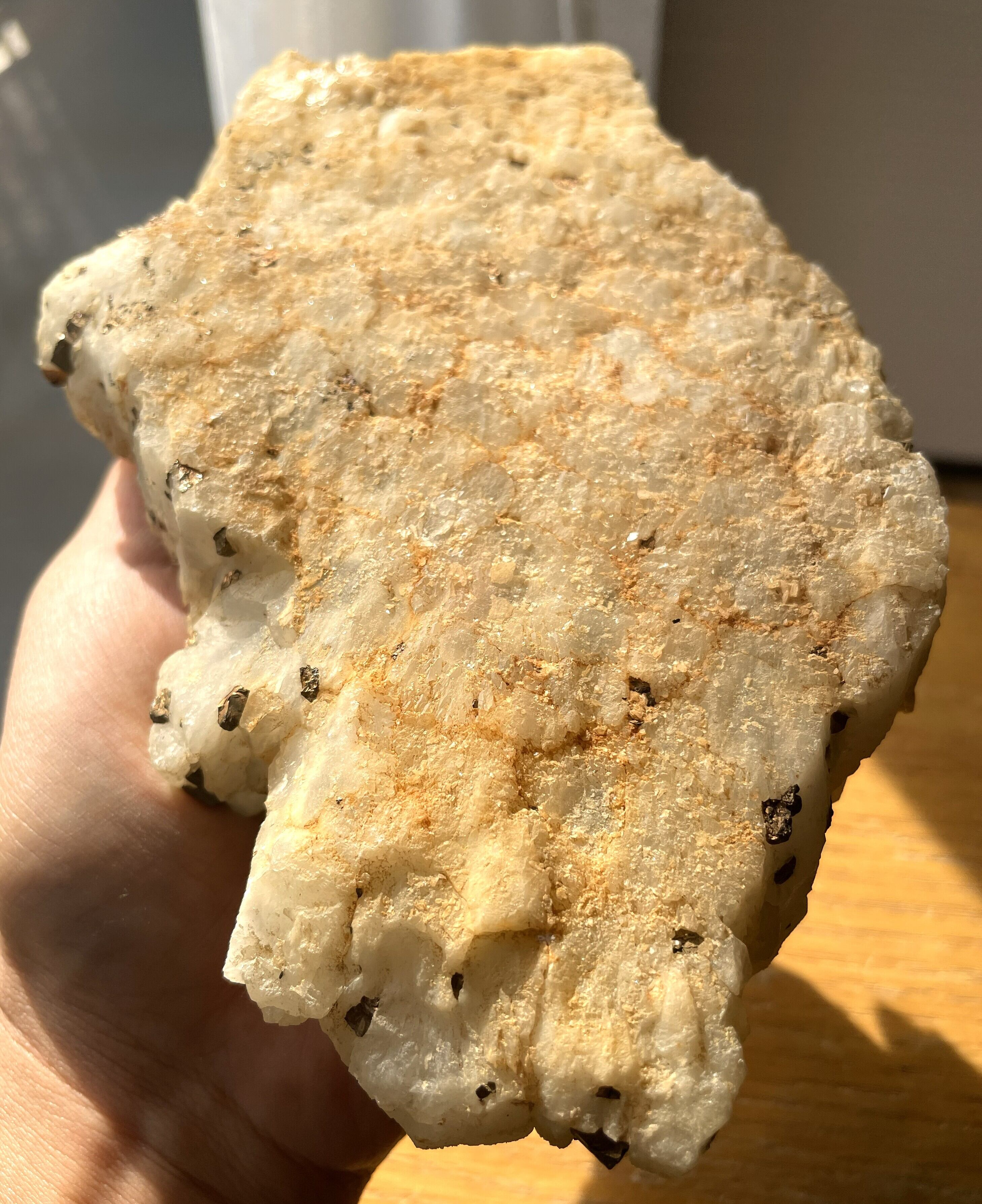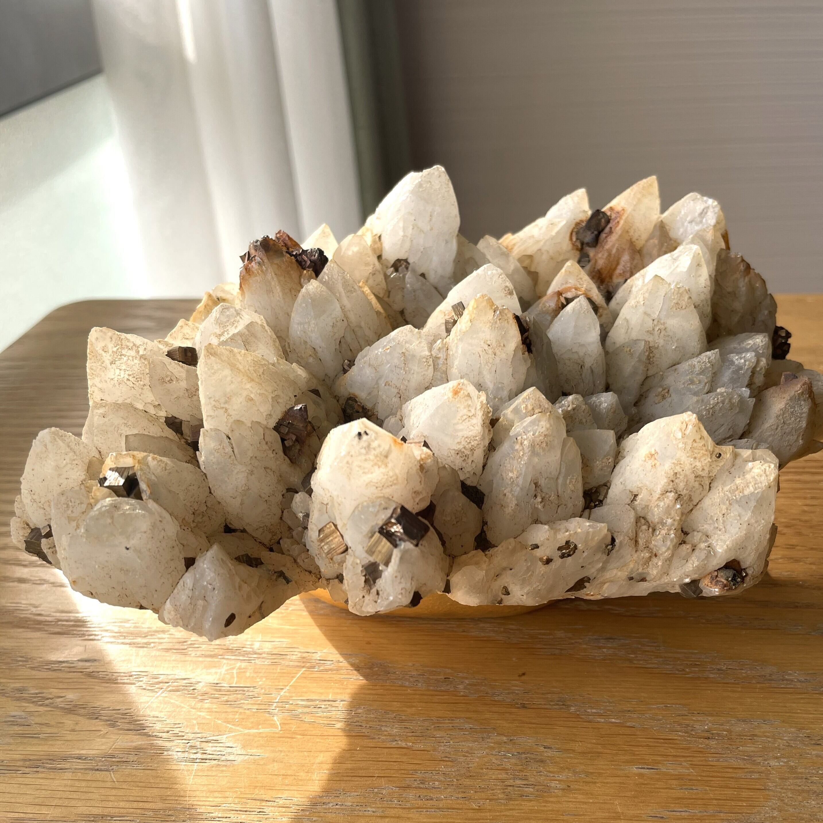 私にはクリスタルが連なる山々のような風景にみえ、パイライトが景色のアクセントとなり趣があります。