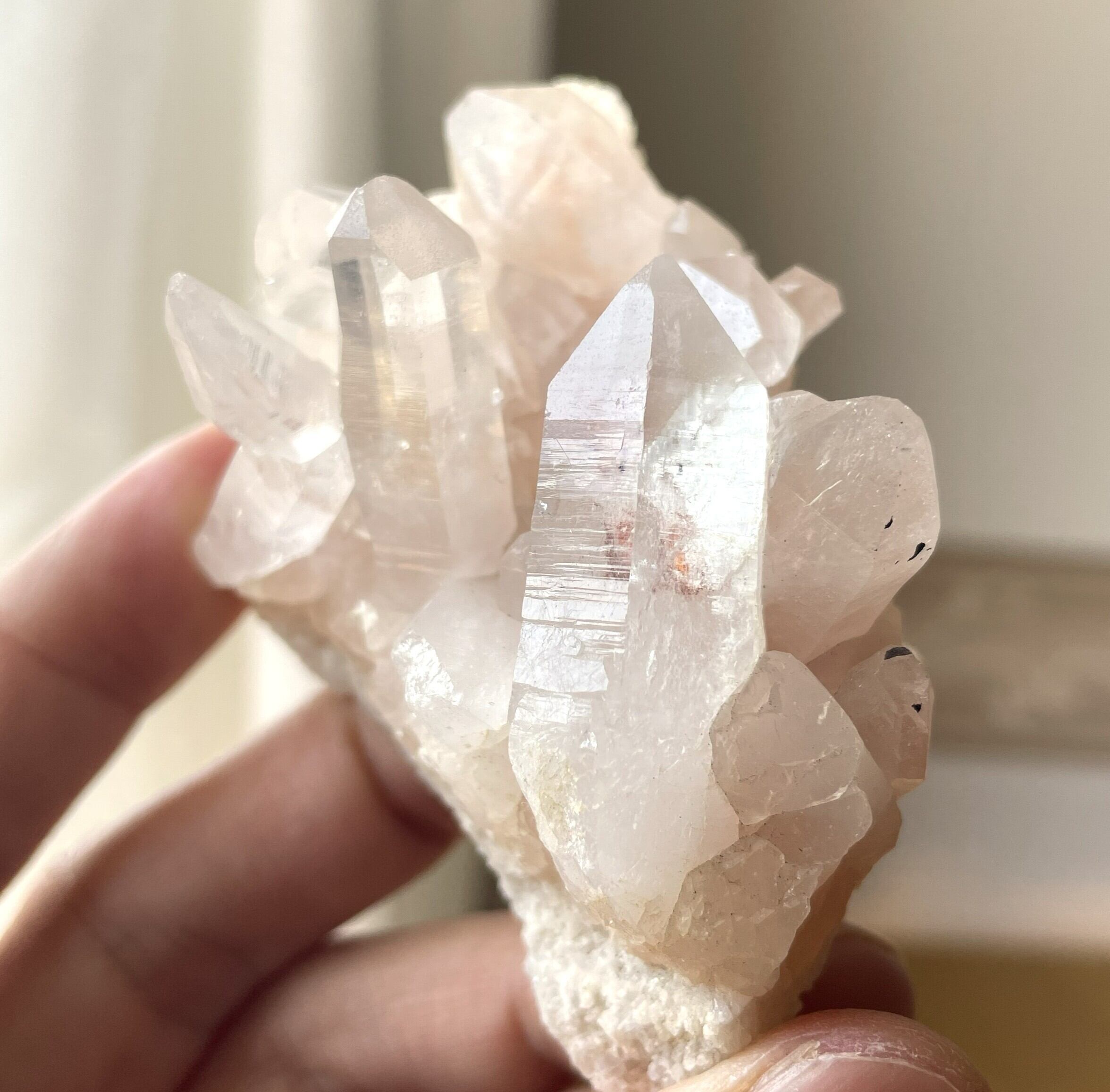 淡い優しいピンクの色彩が美しく、透明度の高いクリスタルが魅力的です。