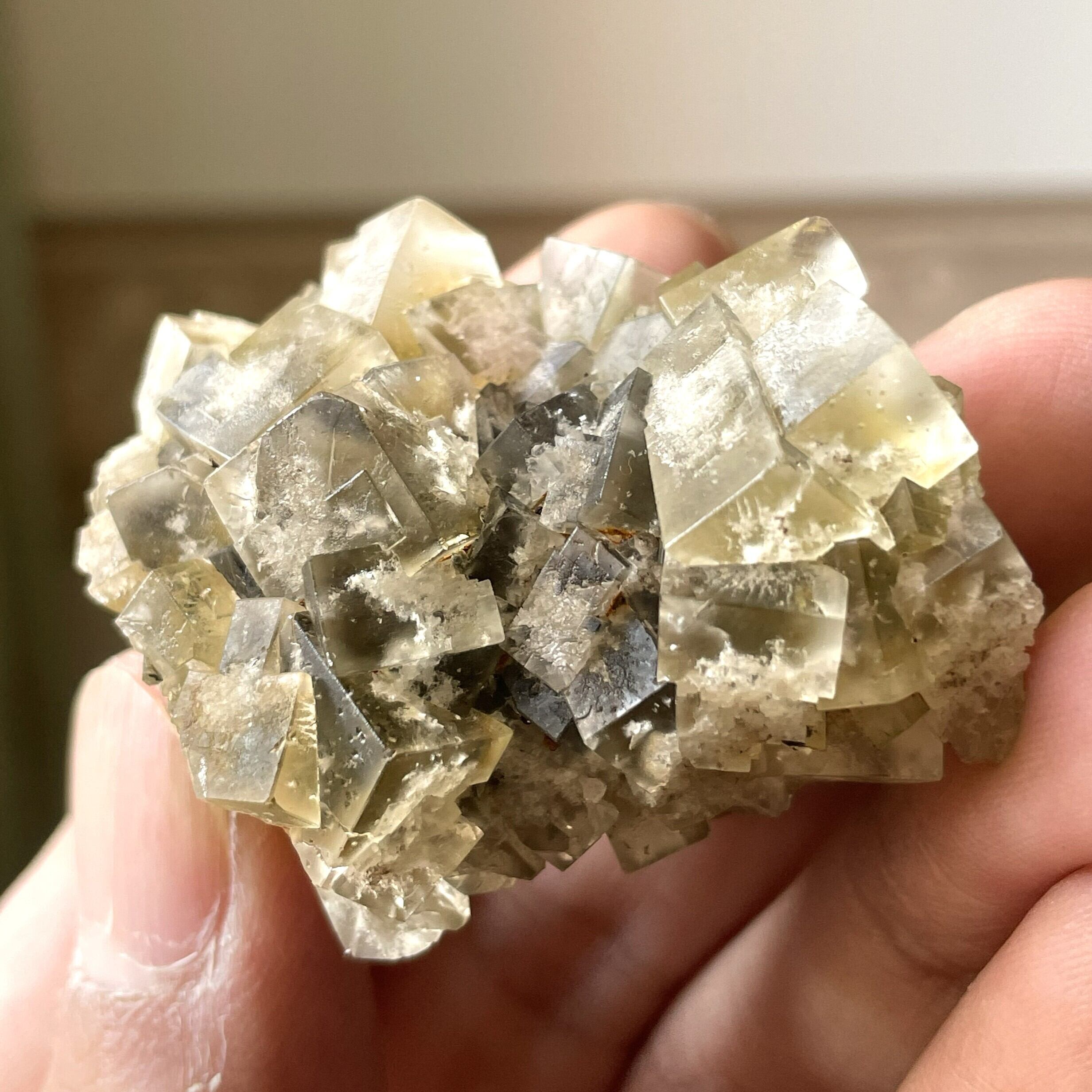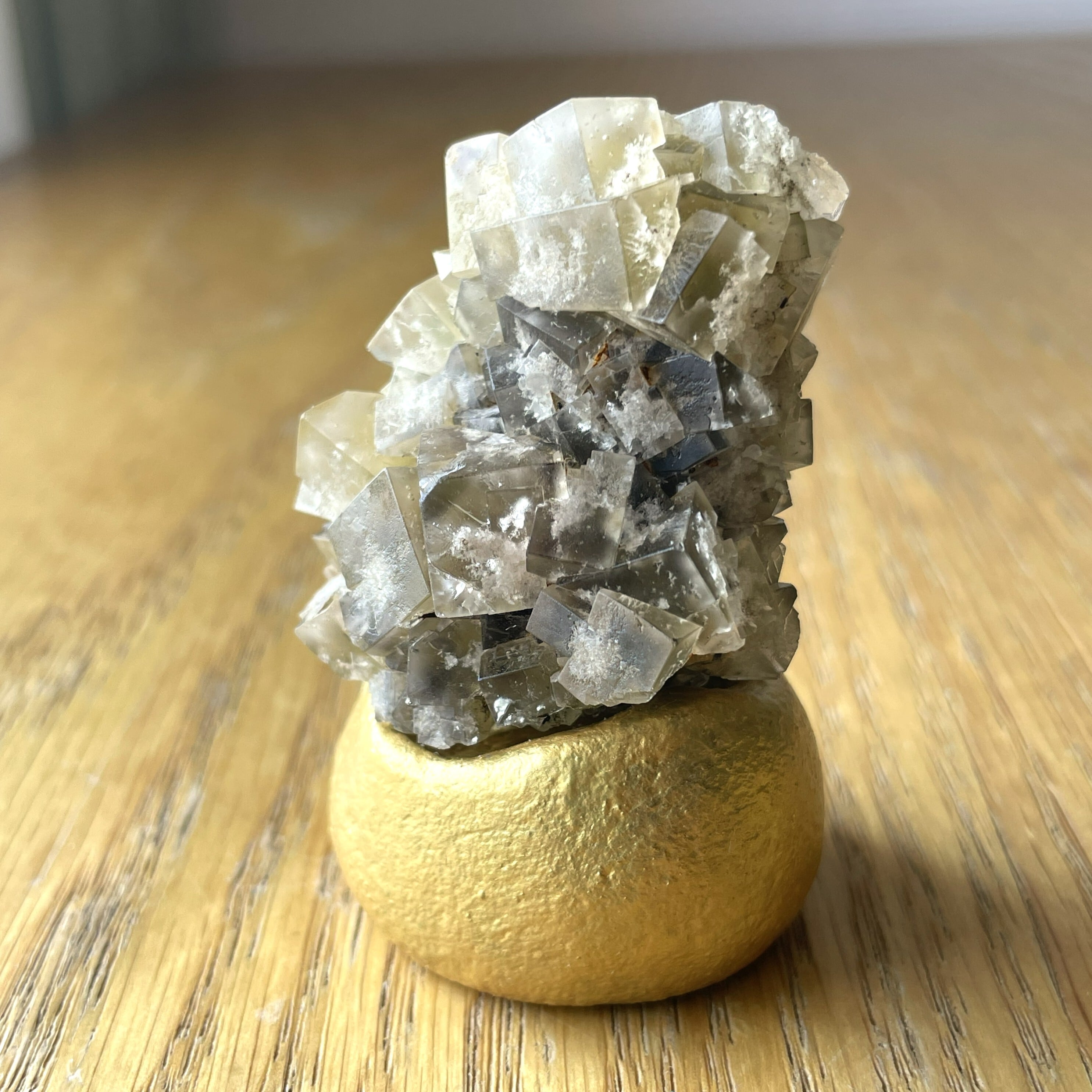 今はもう採掘していないロジャリー鉱山産(イギリス)で、大小フローライトのしっかりした形状が重なり合って魅力的です。