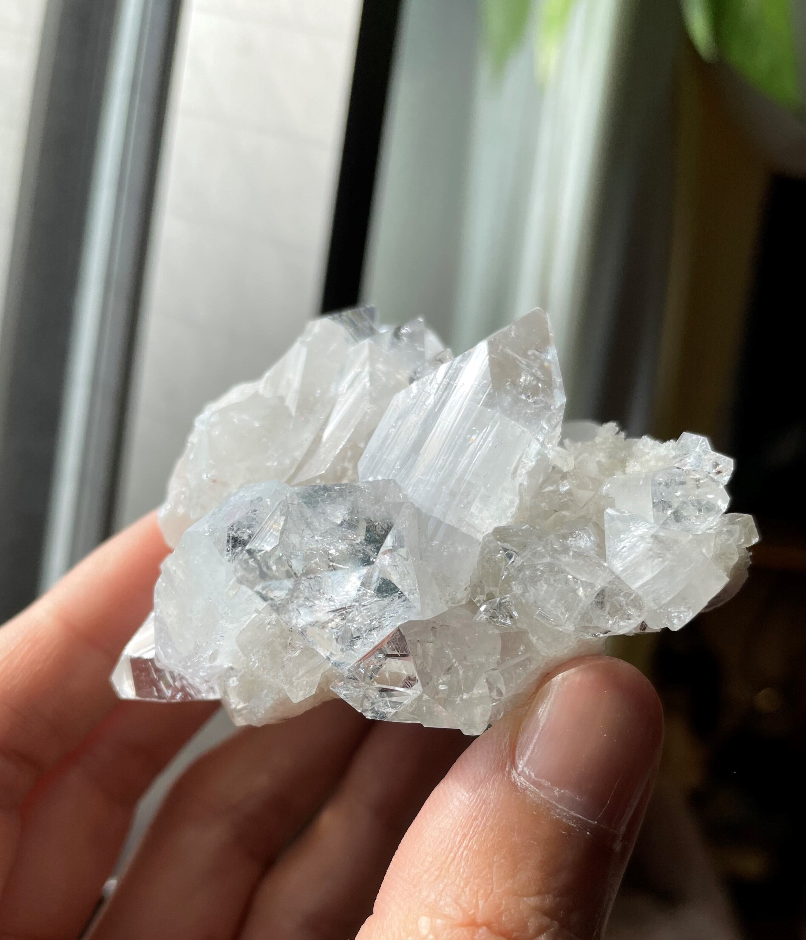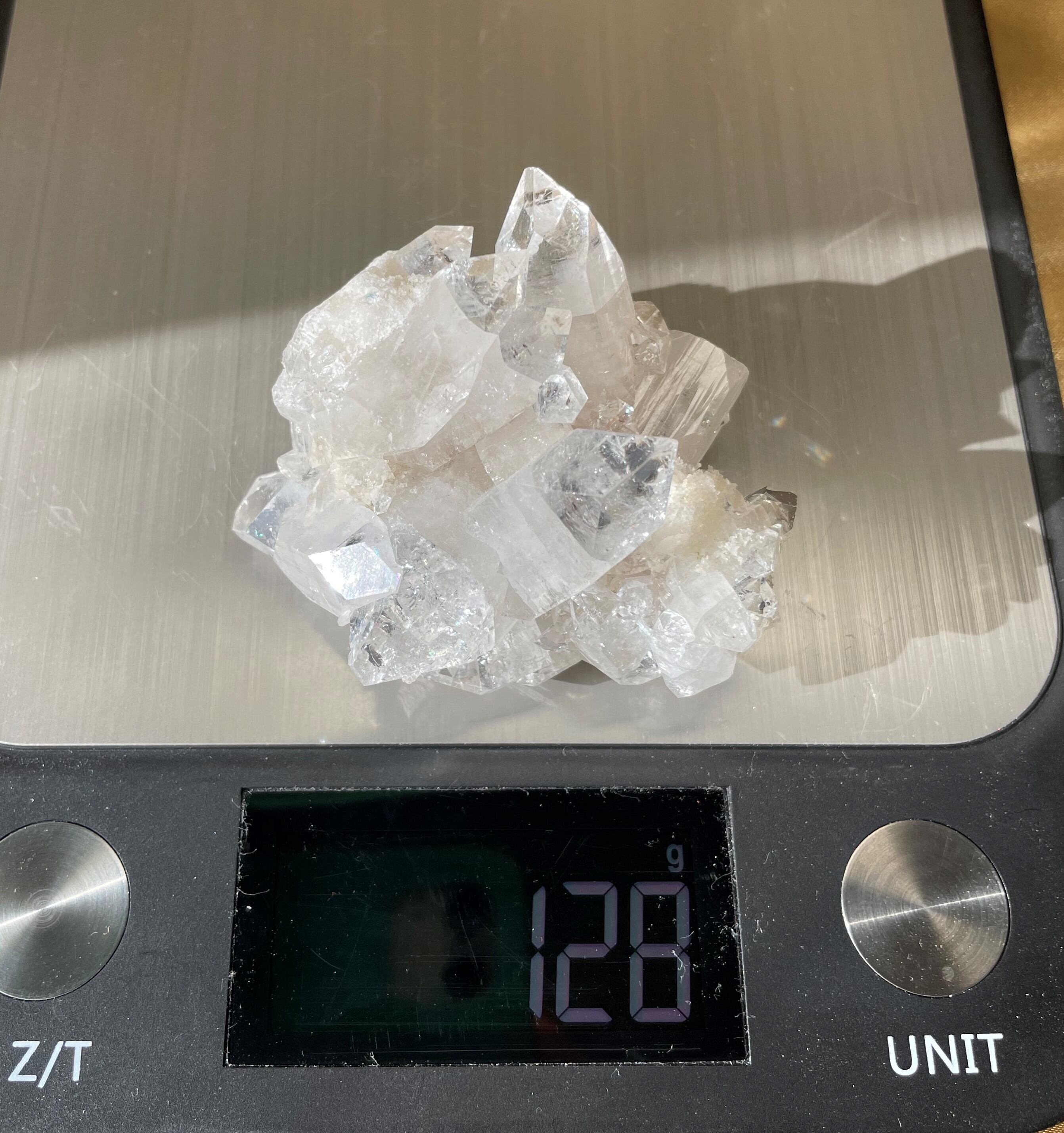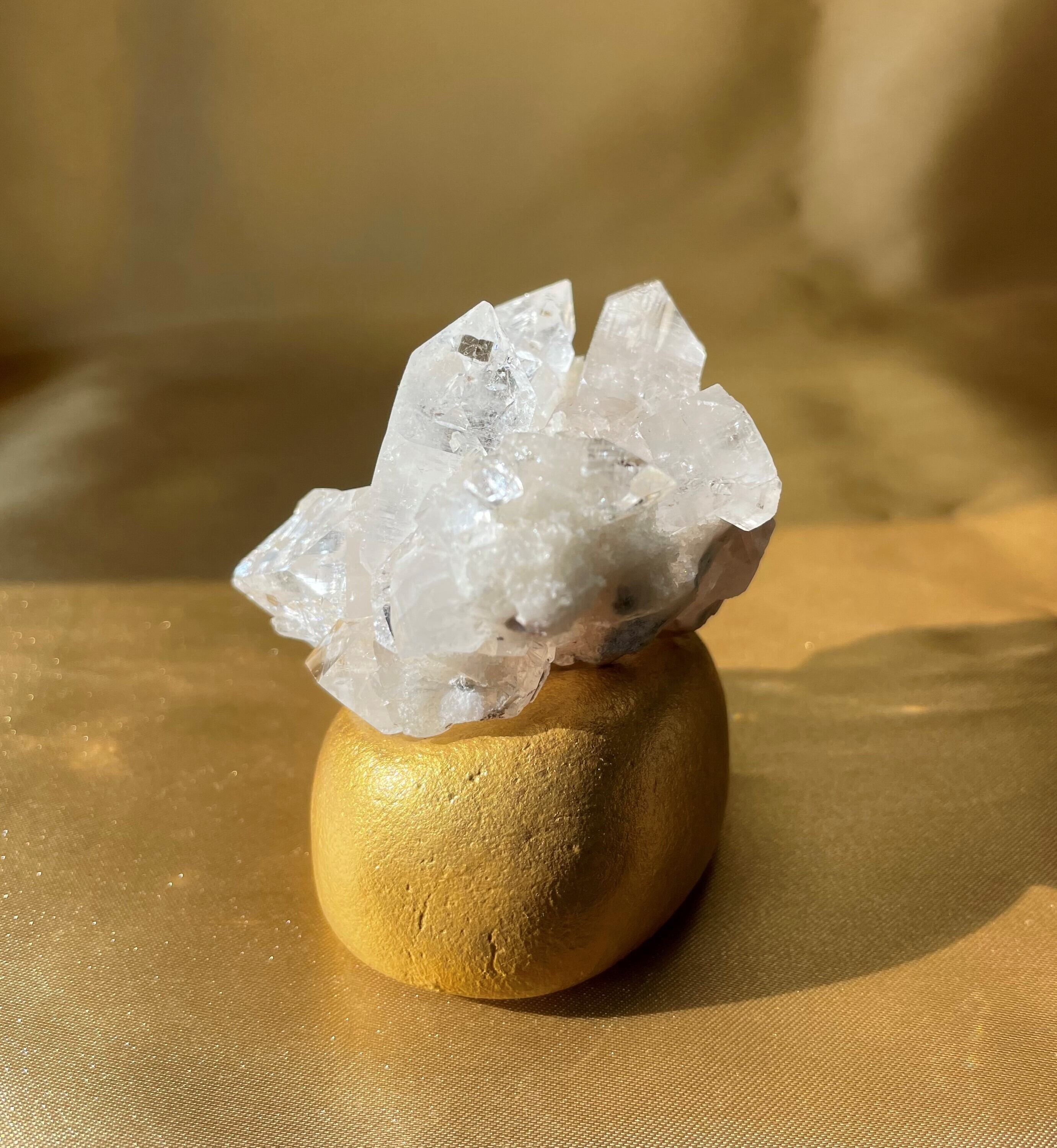 綺麗なアポフィライトの結晶が折り重なって集合したアポフィライトクラスターです。クリアで美しい輝く光を発してくれます。