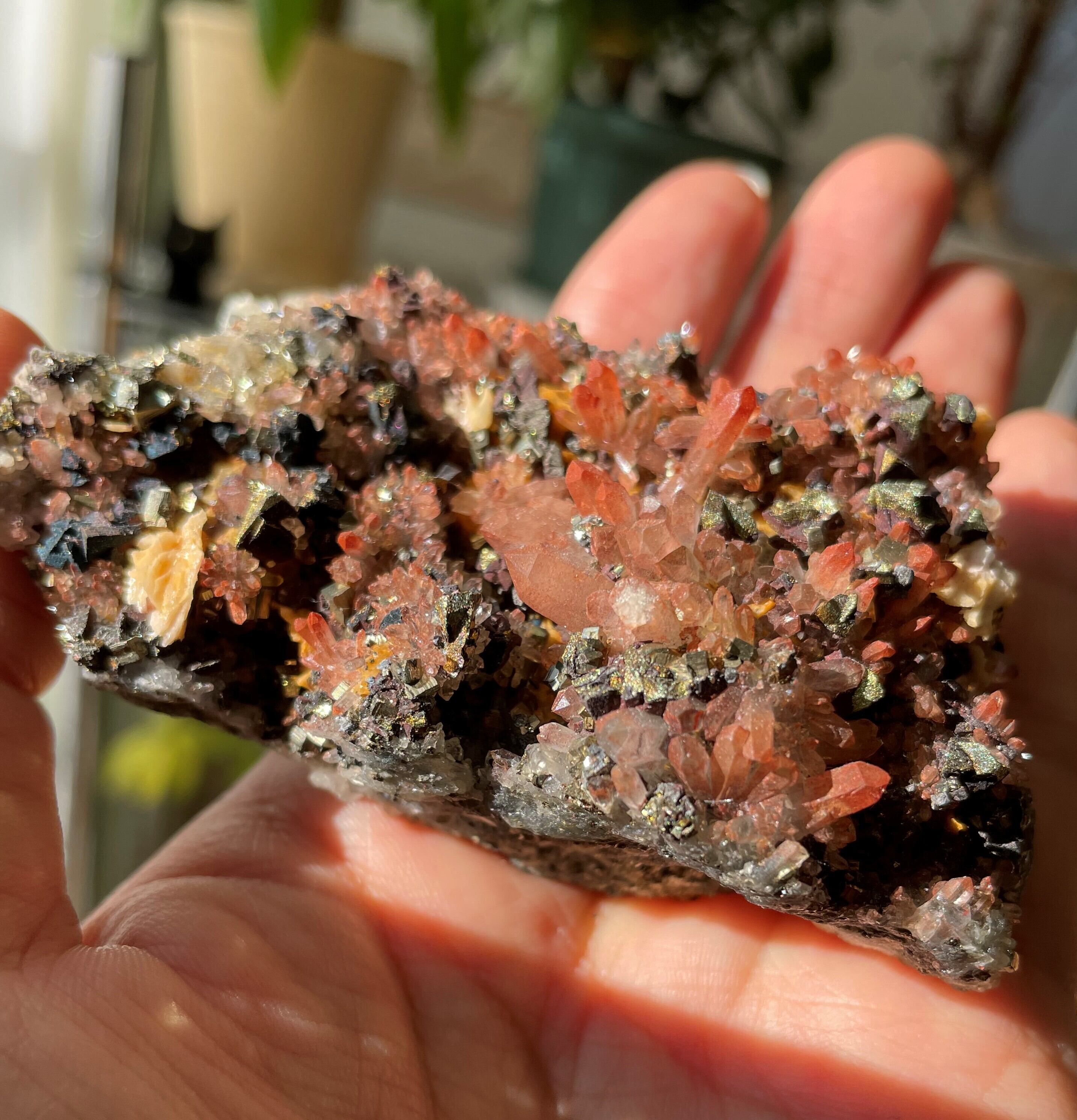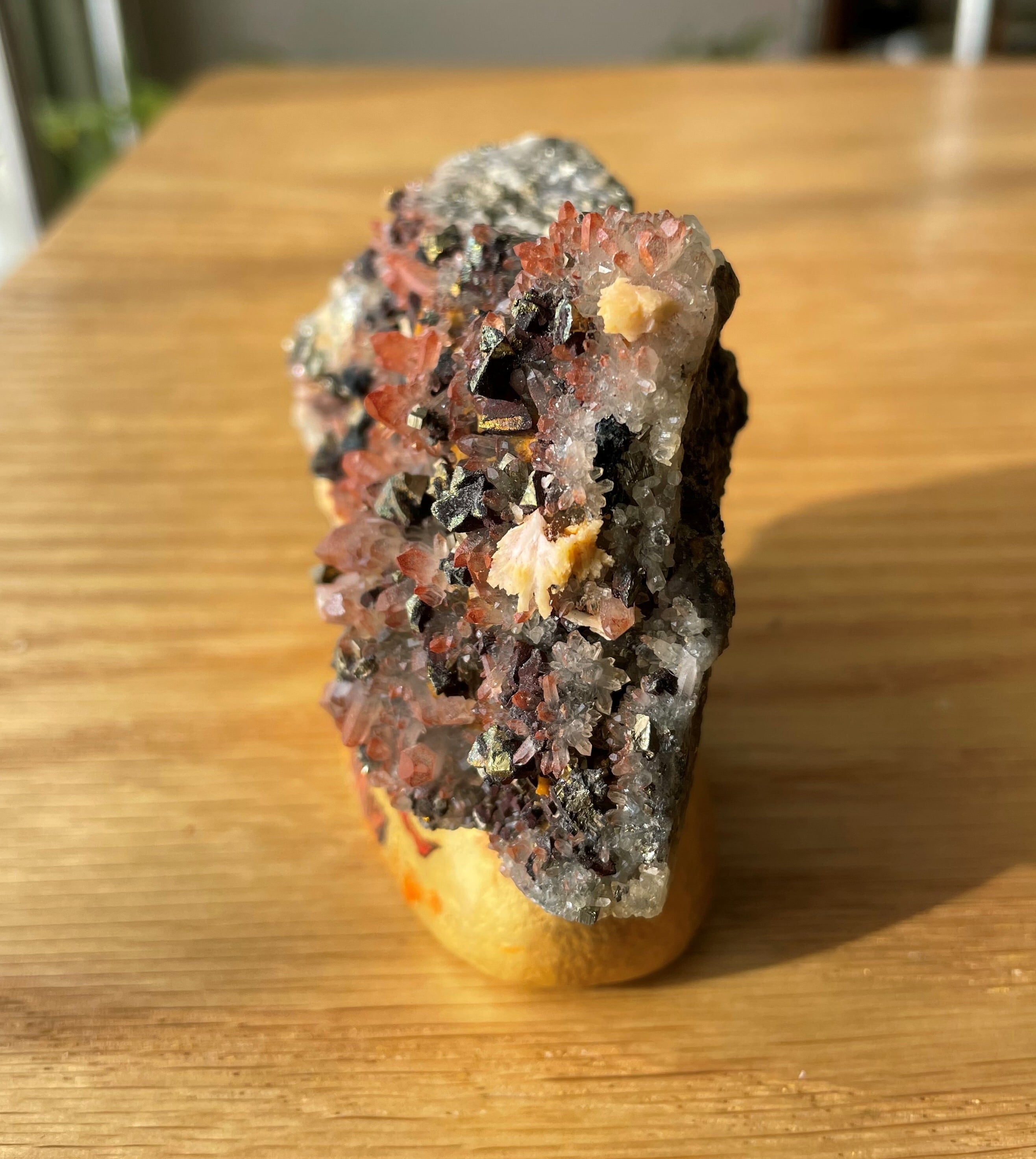 画像の通り、大小たくさんの赤水晶たちが集まり輝く芸術品クラスターです。