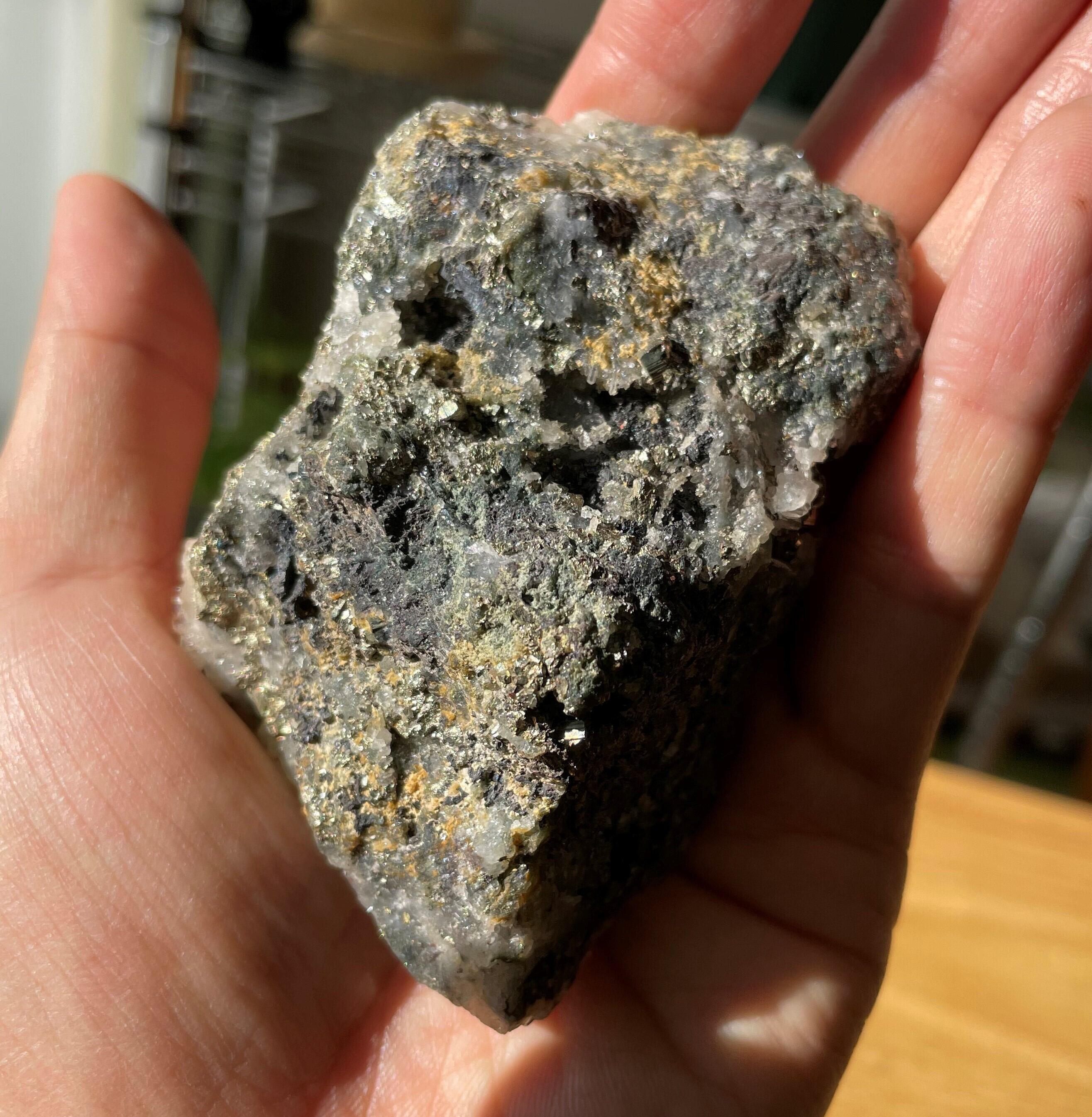 パイライトと共生しているためゴールドに輝く母岩も魅力的です。