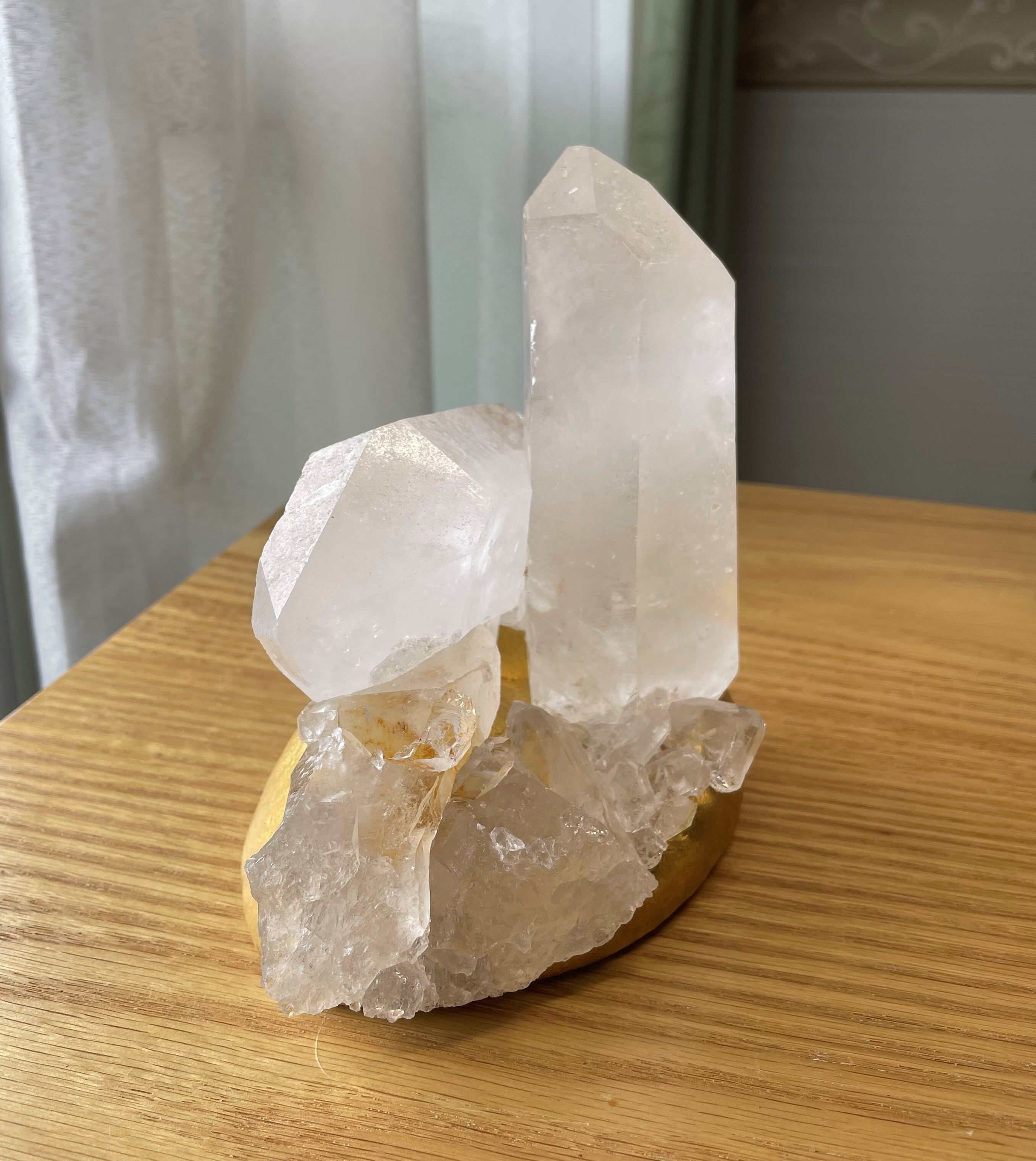 大きな2つの水晶ポイントが重なり合い、とても美しい景観かつ力強いクリスタルクラスターです。(産地は不明です)