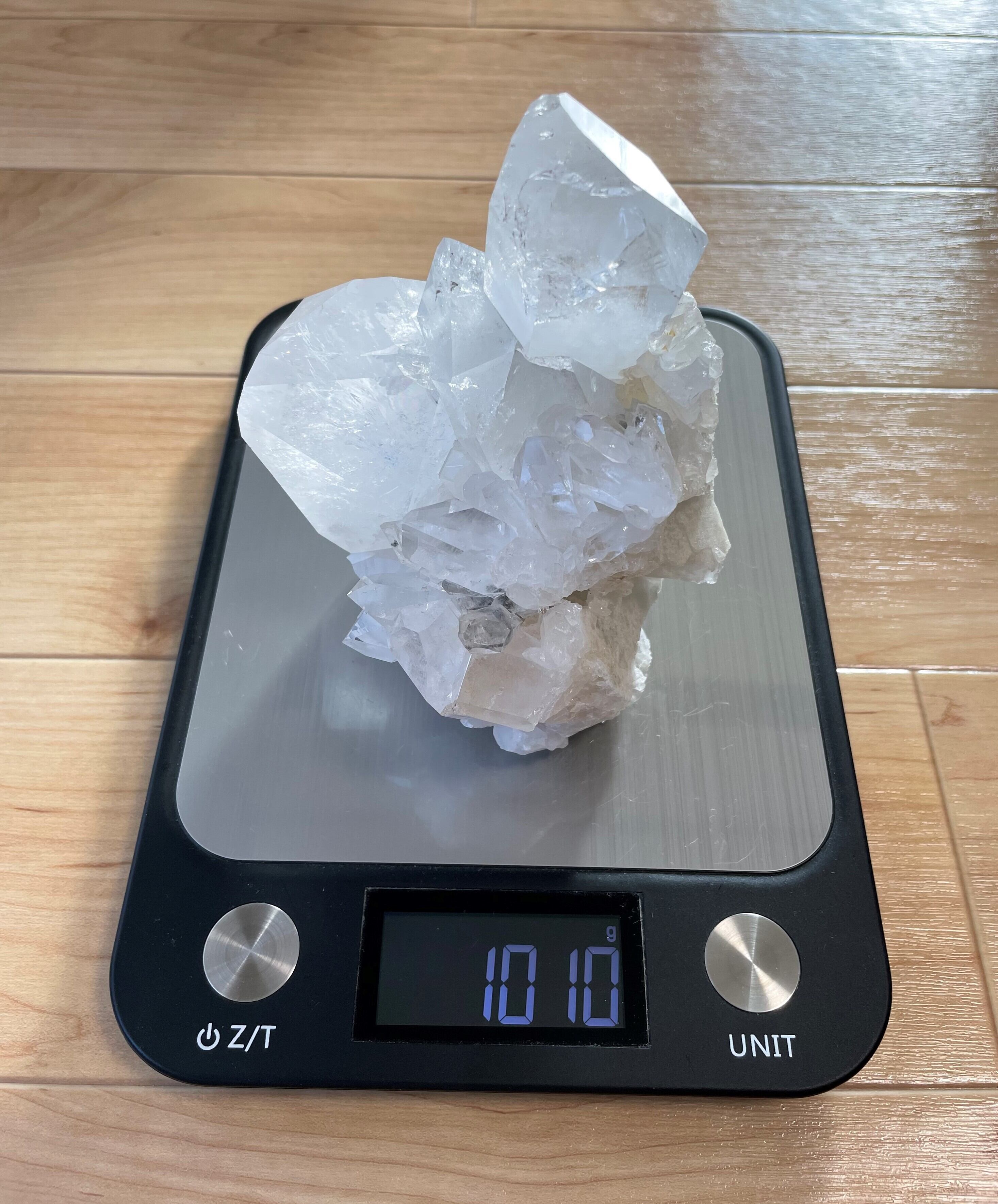 美しい光を放つアメリカ・アーカンソー州産のクリスタルクラスターです。1kgとしっかりした大きさです。