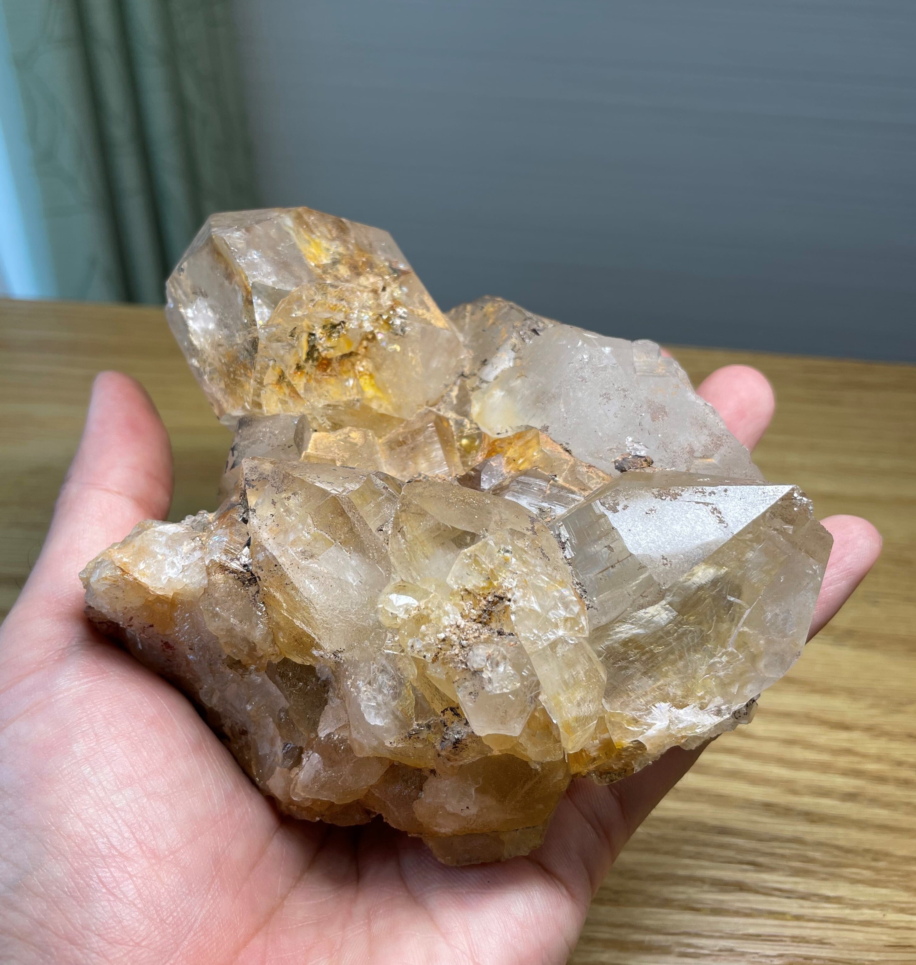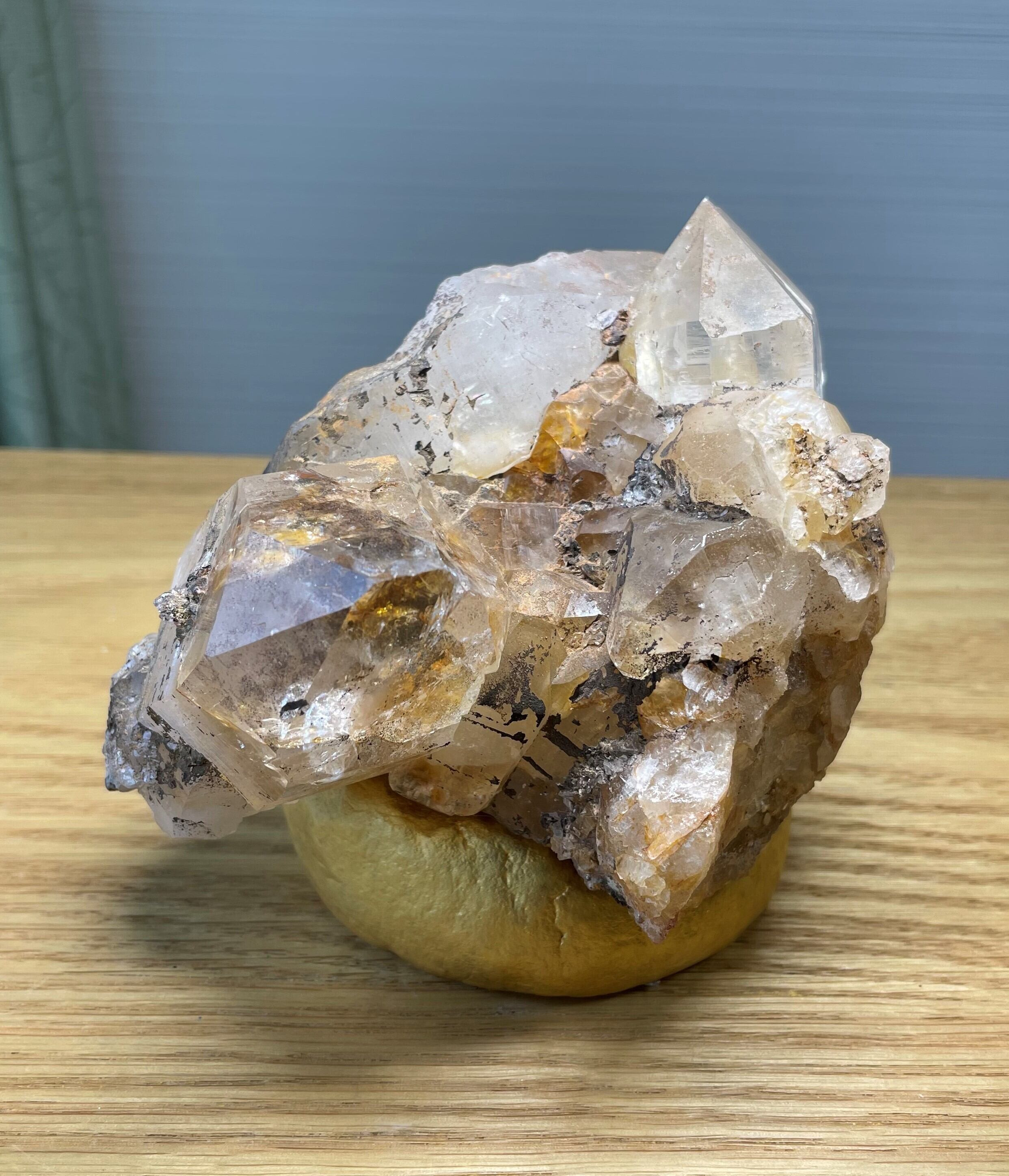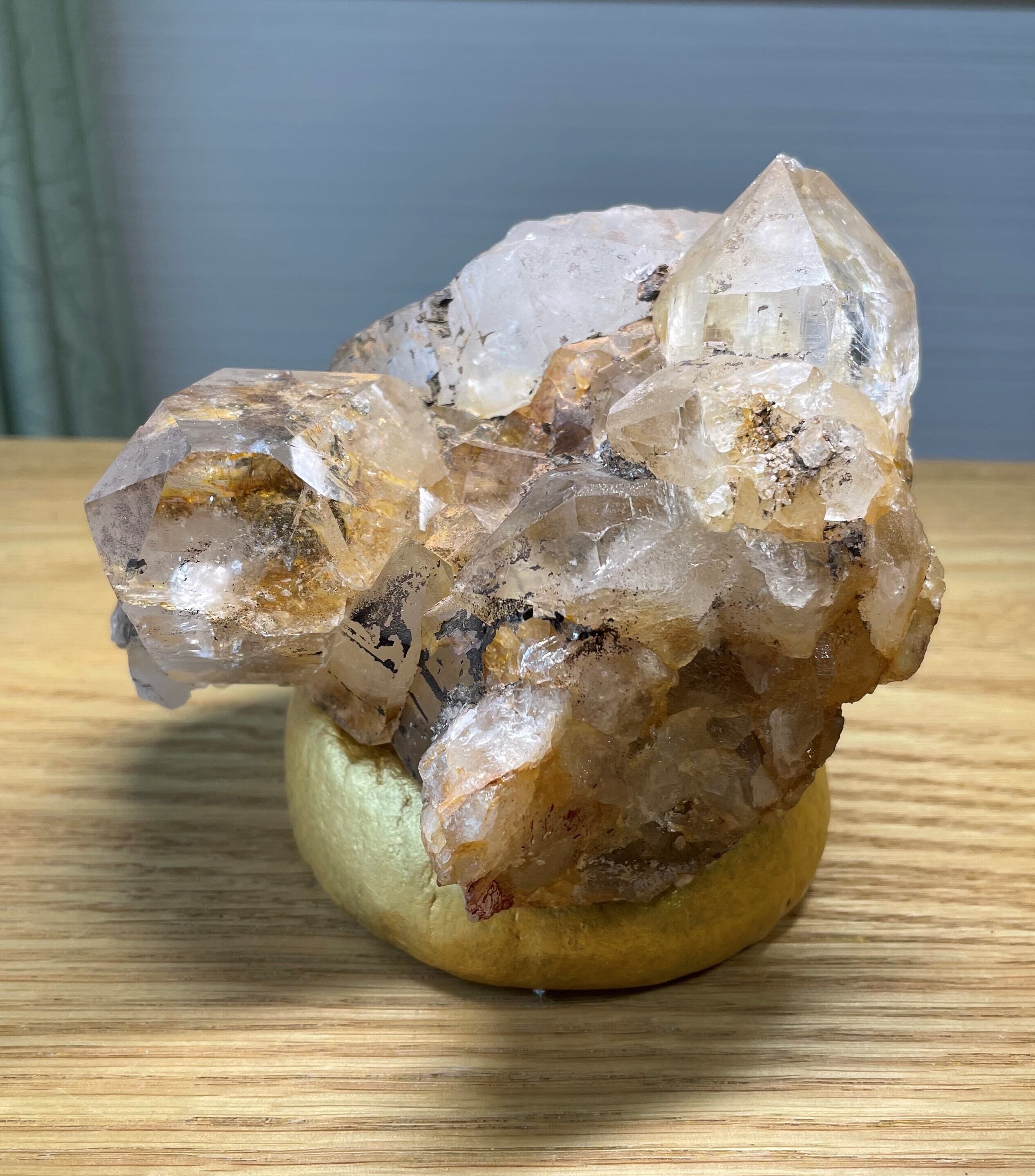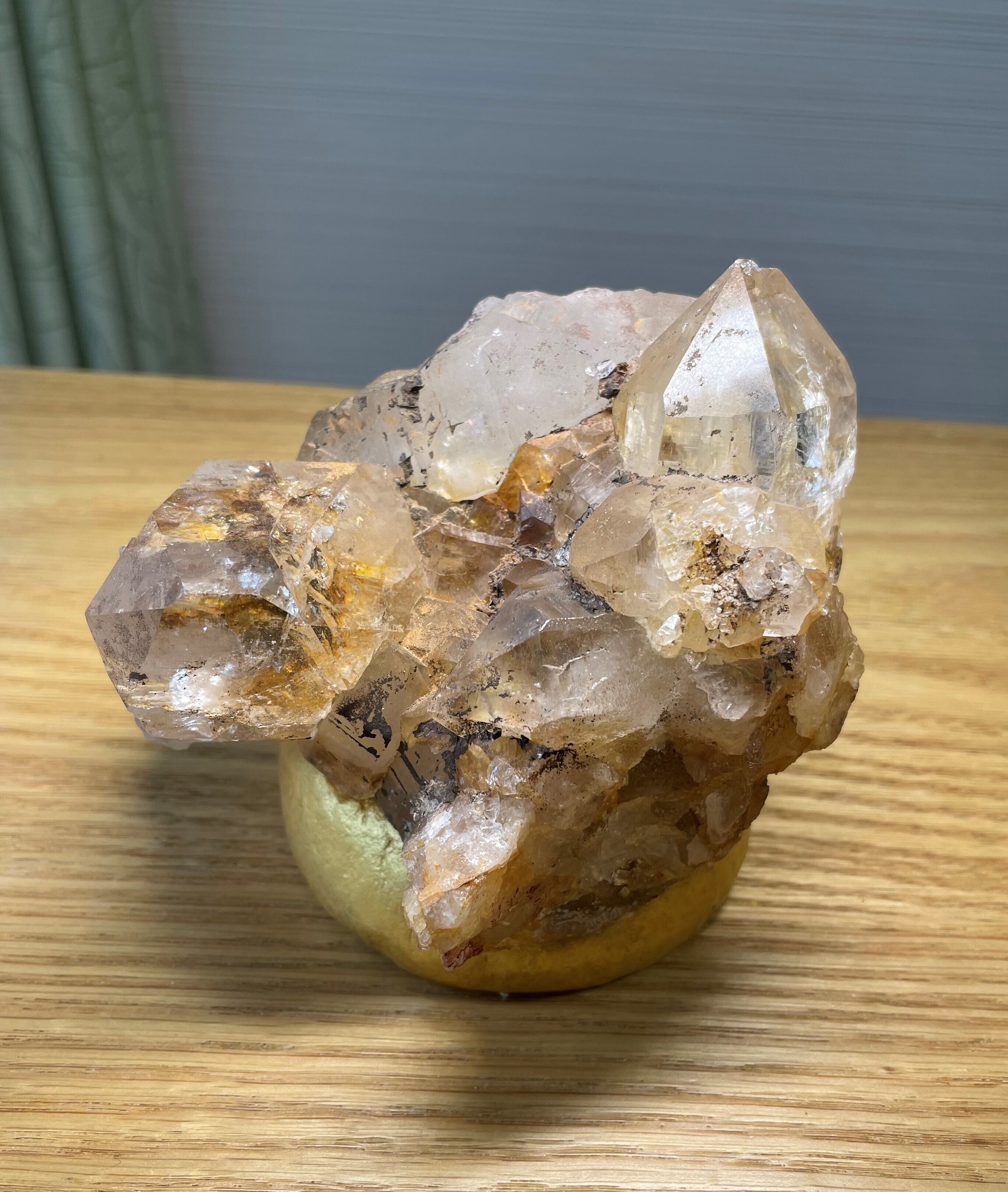 長年、私が育ててきたヒマラヤ水晶クラスターです。(パキスタン スカルドゥ産)イエローのライモナイトやたくさんの内包物により美しい輝きを見せてくれます。