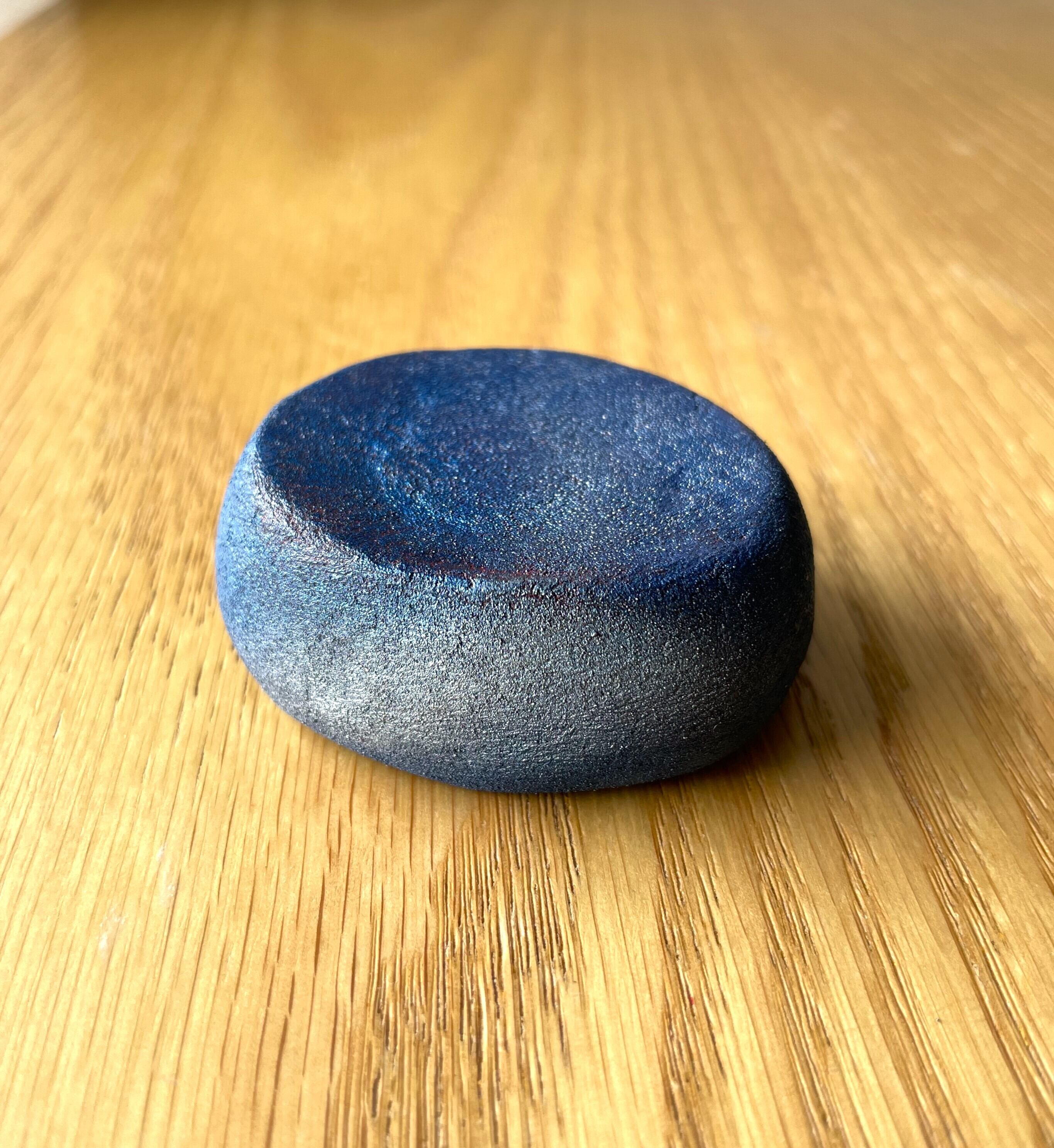 オリジナルで制作した専用の台座をお付けします。美しい色彩に仕上げ保護材を塗布していますが、石の硬度の方が高いため強く当てると色が剥がれる場合があります。丁寧にそっと乗せて頂くとより長持ちします。