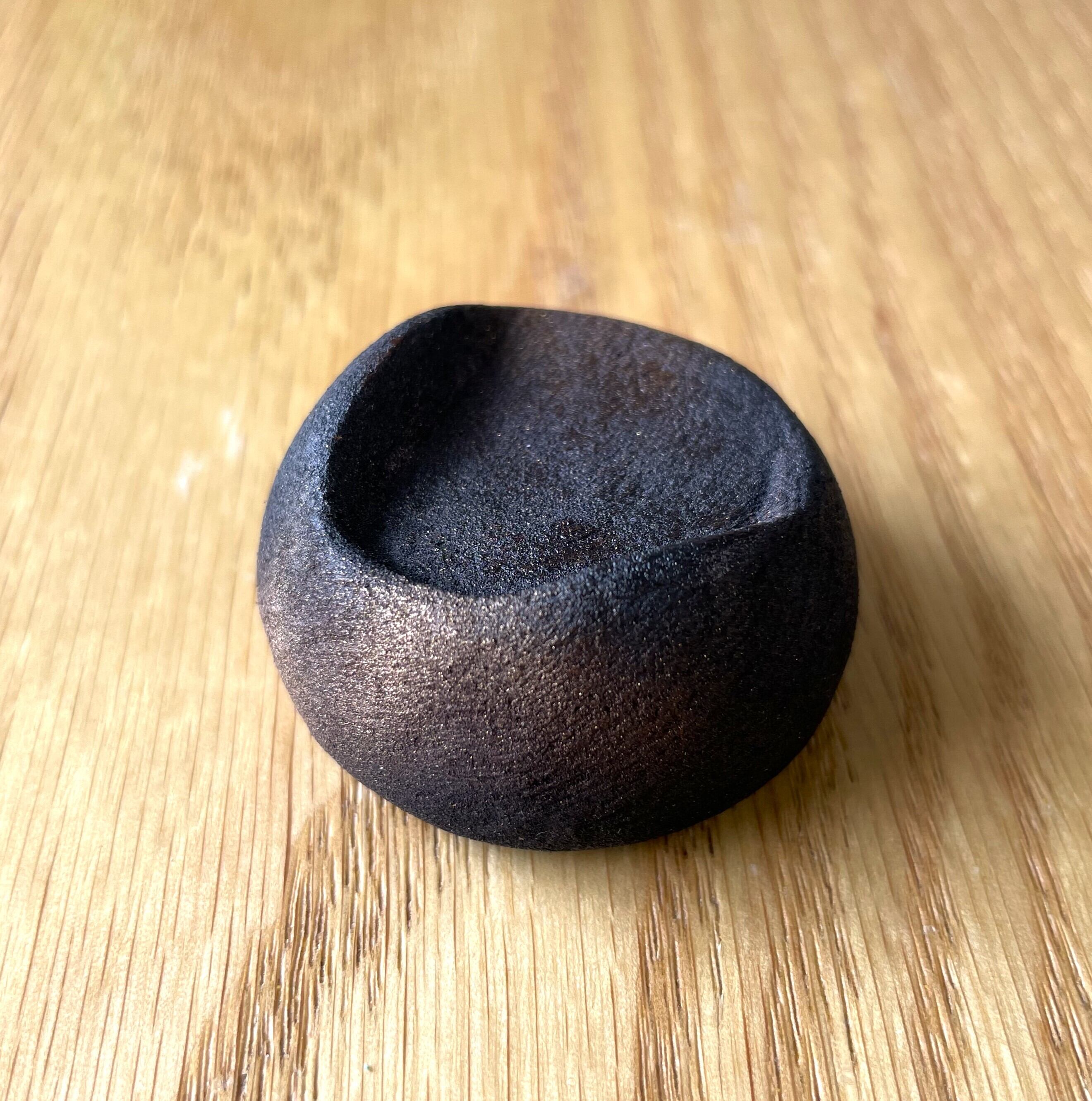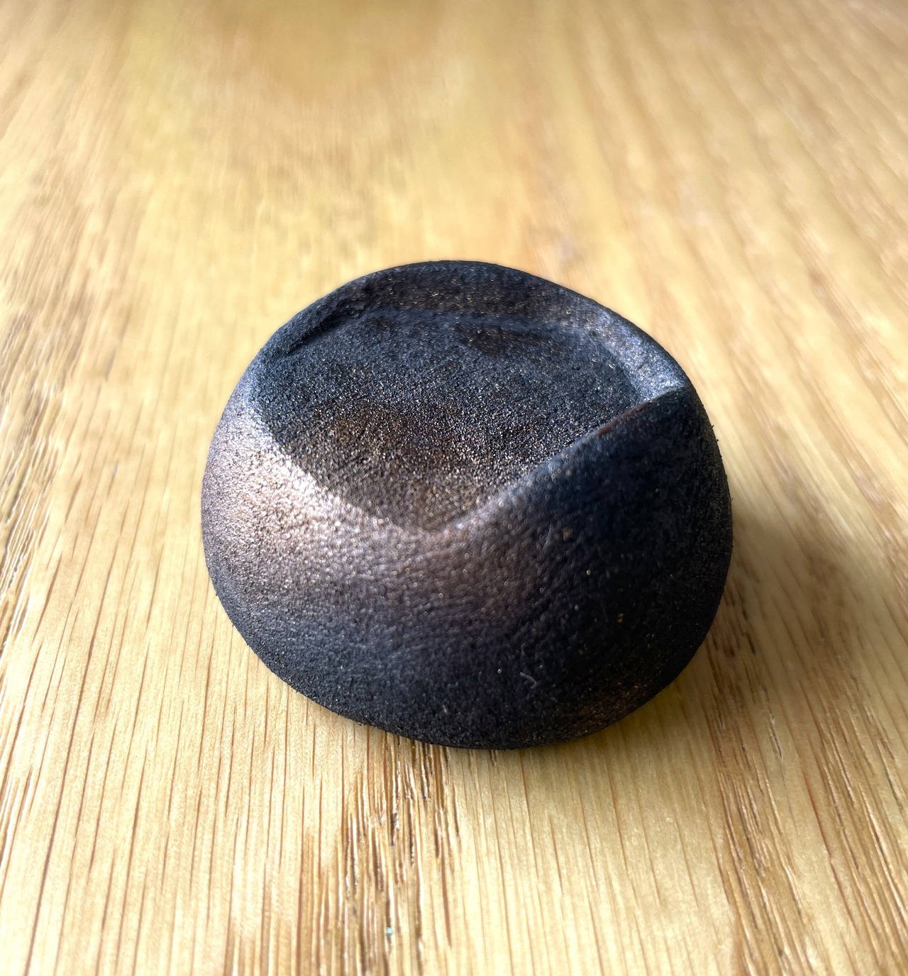 オリジナルで制作した専用の台座をお付けします。美しい色彩に仕上げ保護材を塗布していますが、石の硬度の方が高いため強く当てると色が剥がれる場合があります。丁寧にそっと乗せて頂くとより長持ちします。