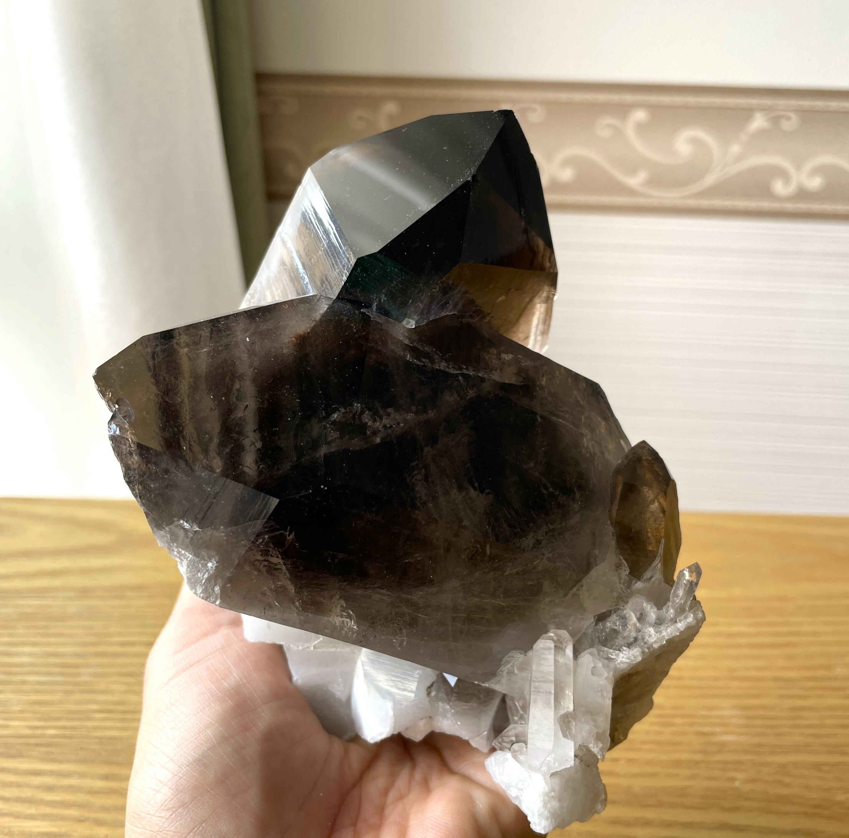 こちらは地球の磁心に位置するアメリカ、アーカンソー州産の大きく高品質な黒水晶クラスターです。大事にメンテナンスして育ててきました。今必要とされる方がいらっしゃるため掲載しました。
