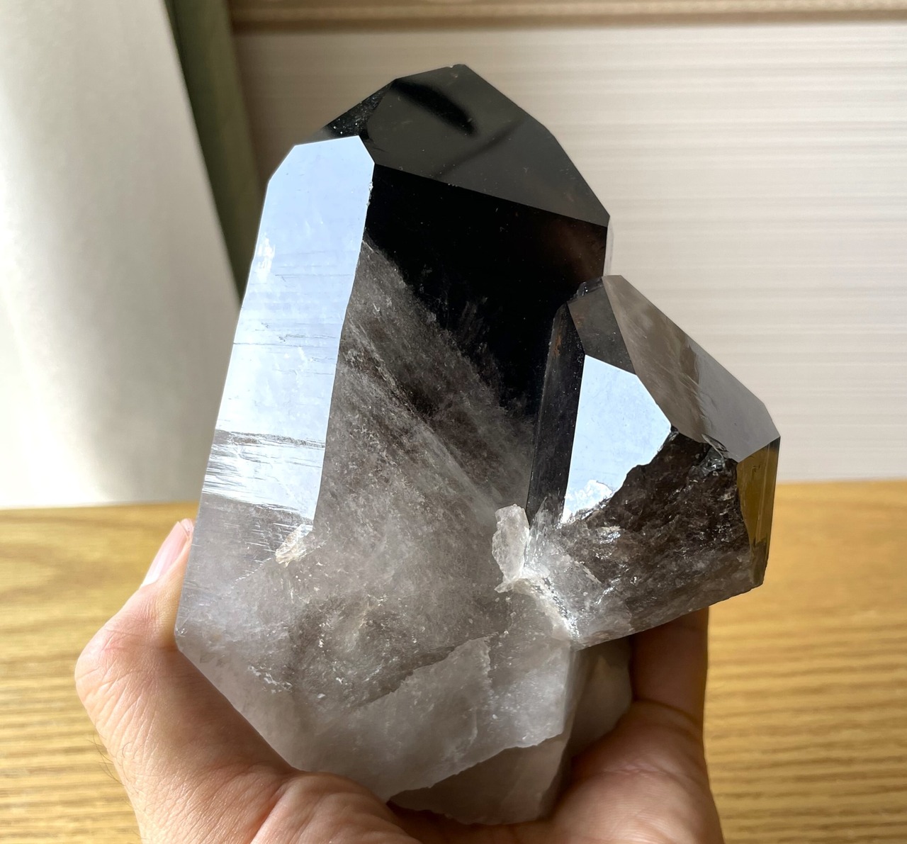 光に当たるとまたピカピカで綺麗なんです。黒は全ての色を内包した色です。黒水晶をお持ちでない方におすすめです。