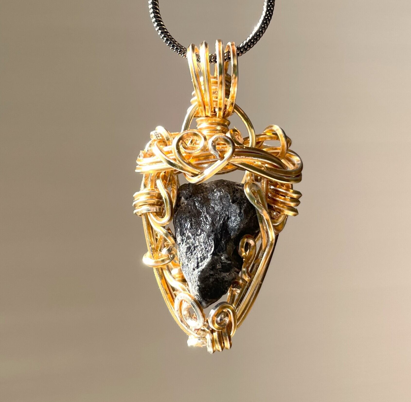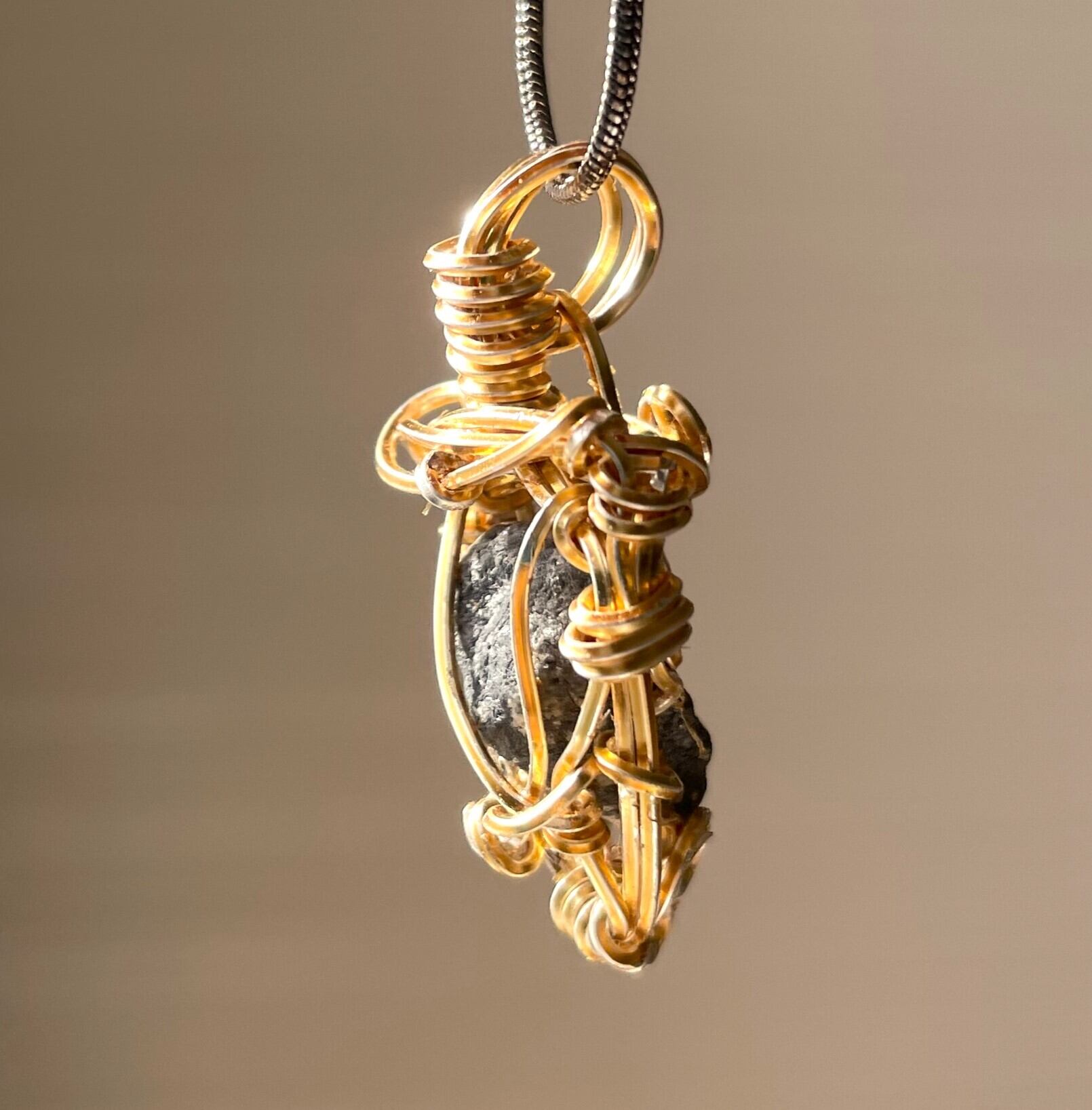 珍しいダイヤモンド原石をワイヤーアートにてペンダントに仕立てました。