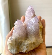 たくさんの結晶が重なり合いキラキラと美しく輝きます。この水晶でしか感じられない至福感があります。綺麗な紫のきらめきを見て触れて楽しんで頂きたいです。