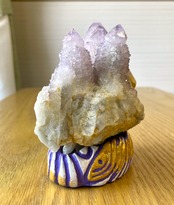 このクリスタルがより輝くように専用台座を制作しています。パープル、ホワイト、ゴールドカラーで愛嬌のある姿となりました。