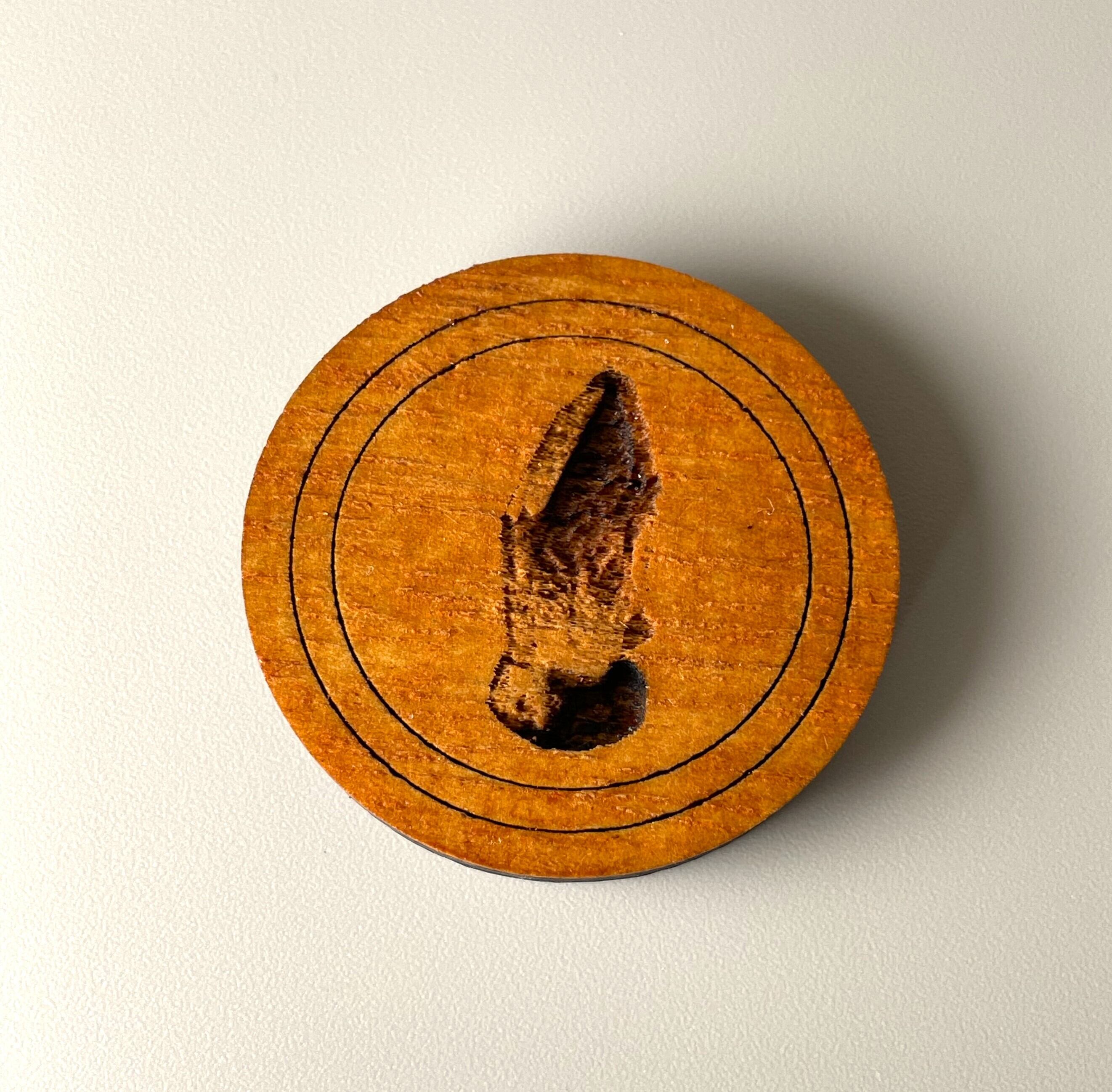 木製台座にはこのクリスタルのシルエットとドラゴンが入ったショップロゴを彫り、ニス塗装しています。