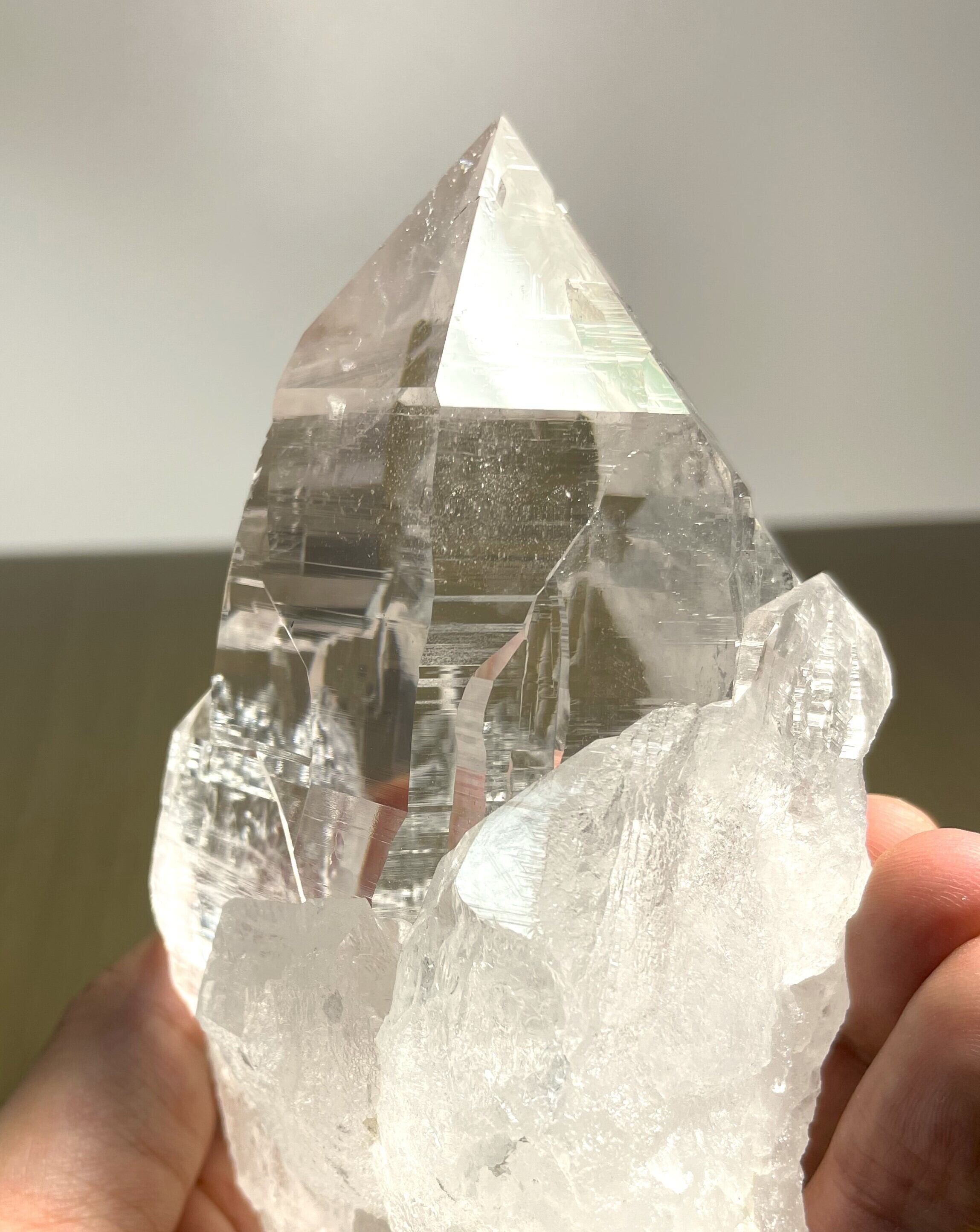 素晴らしい美しさで大事にしてきたヒマラヤ水晶ポイントです。(ガネーシュヒマール山域 ティプリン産)