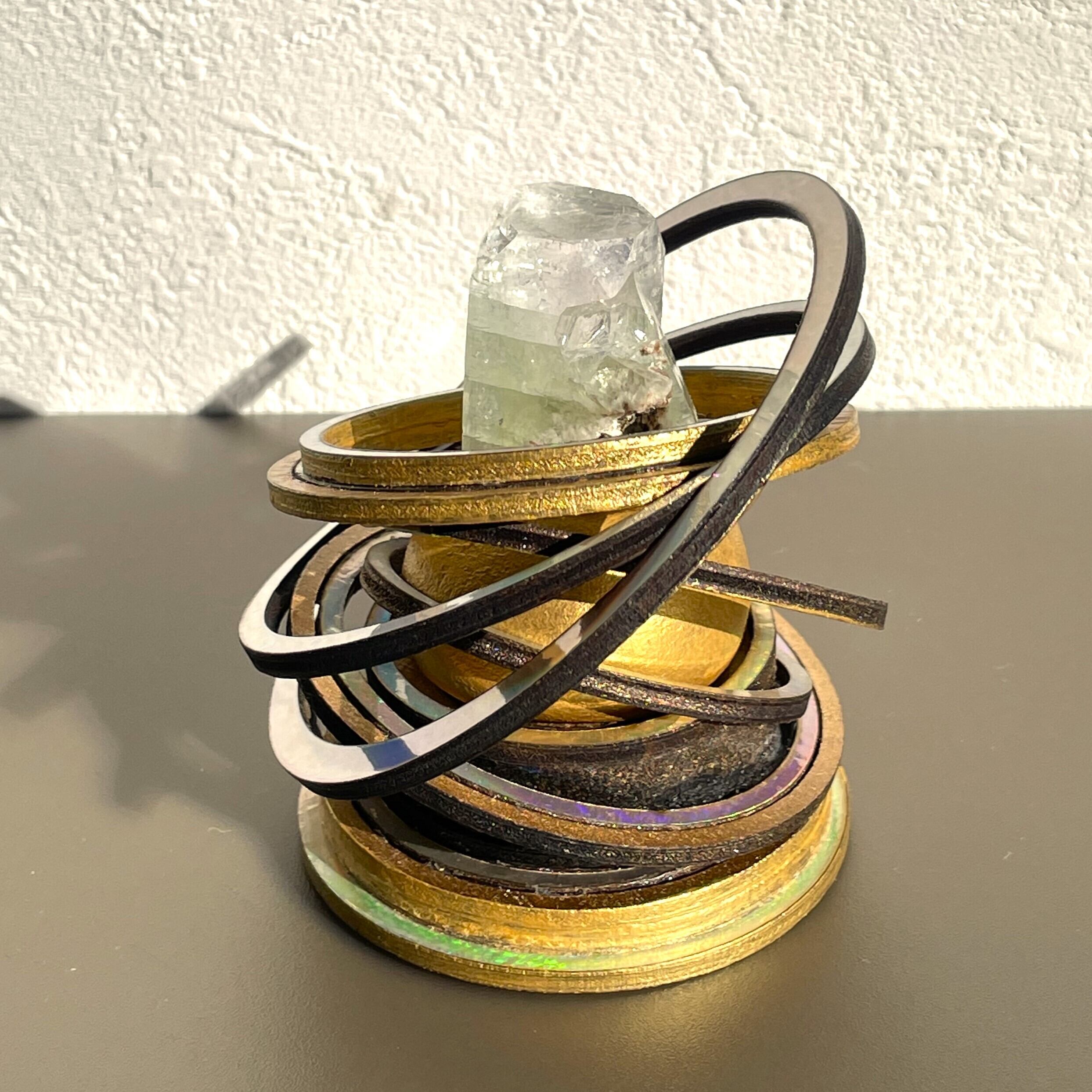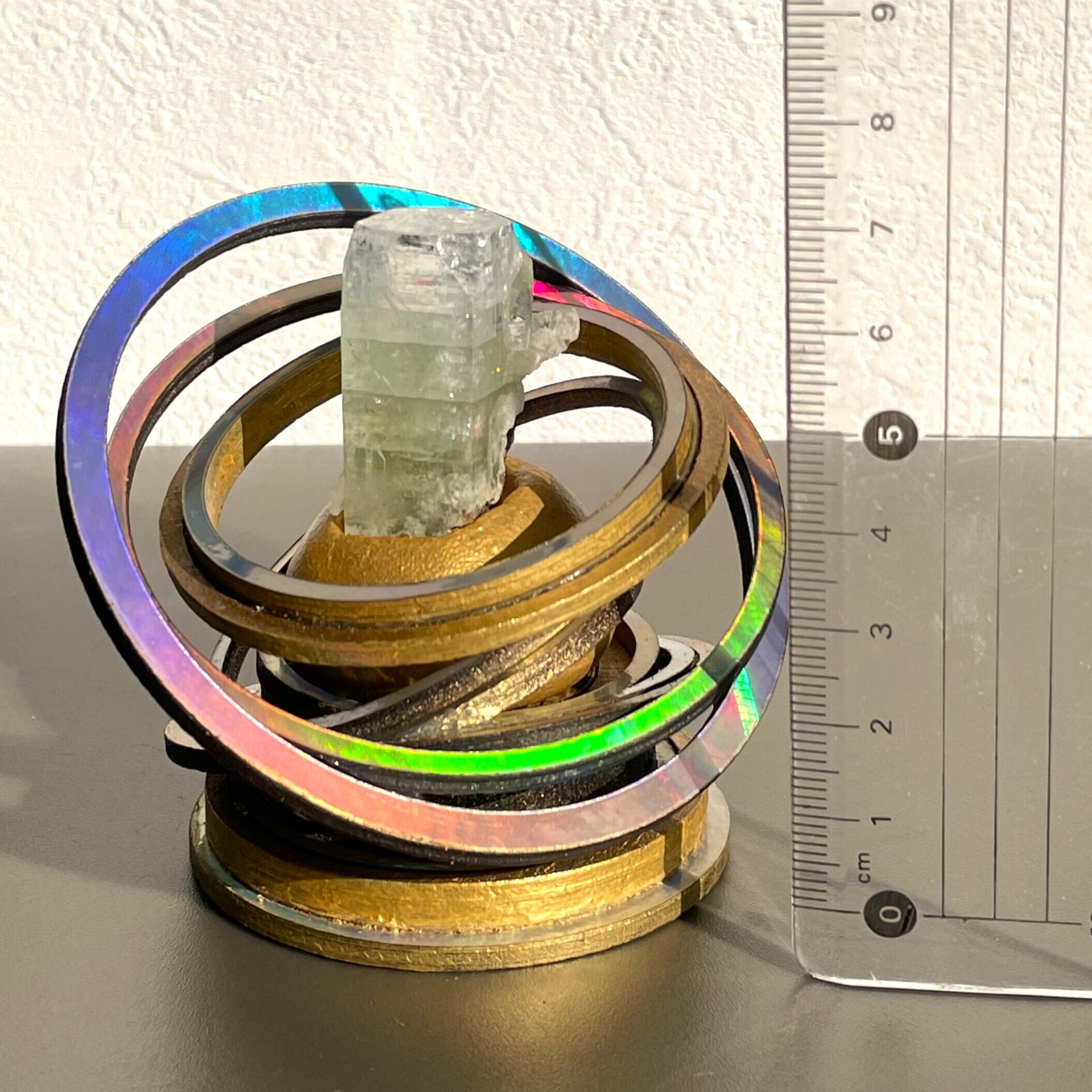 大切なクリスタルに見合うように、木製の美しい専用台座を制作致しました。ゴールド&シルバーレインボー。細部まで丁寧に仕上げたハンドメイド1点物。惑星のリングをイメージして完成させました。
