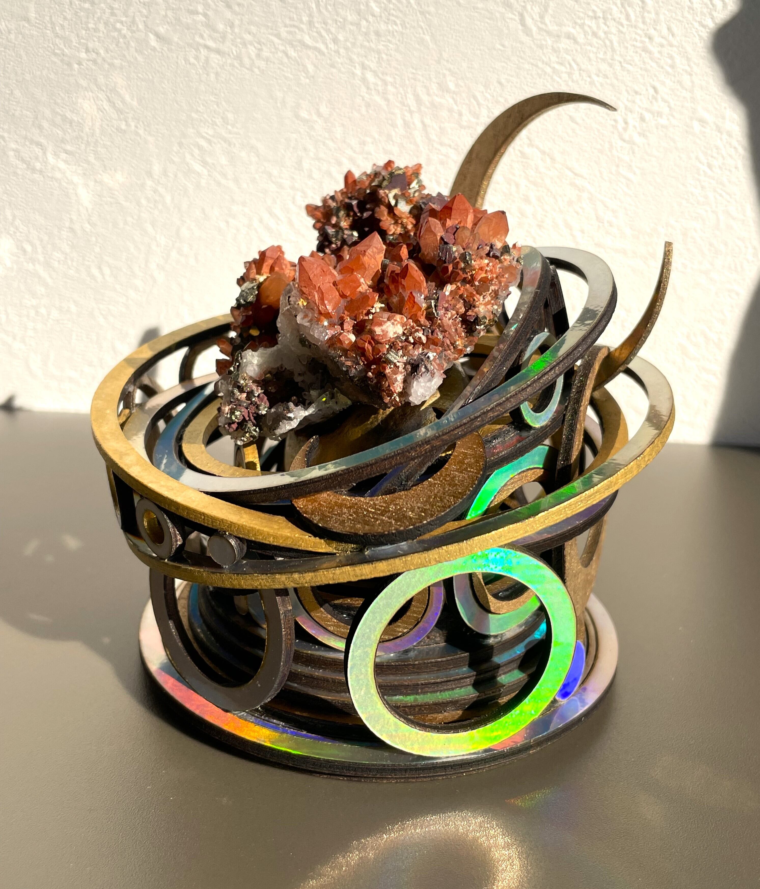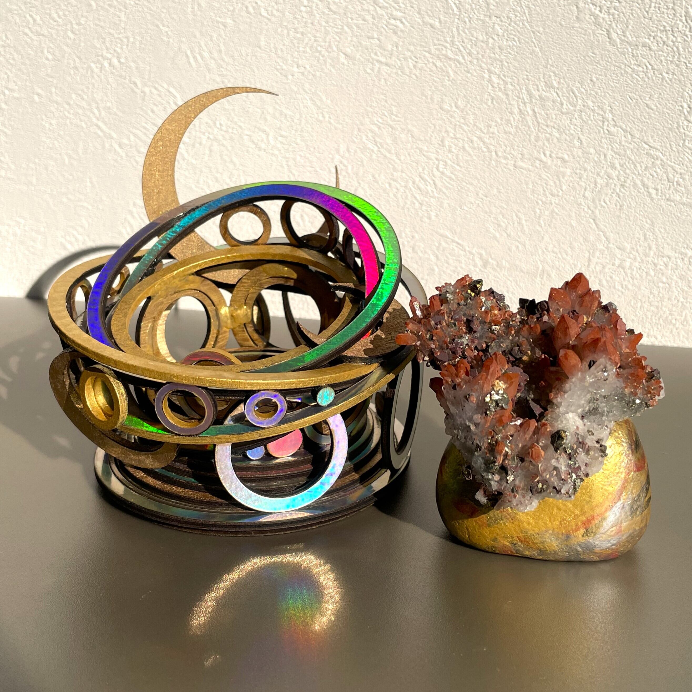 ゴールド&シルバーレインボーの美しいアート木製専用台座。細部まで丁寧に仕上げたハンドメイド1点物です。
